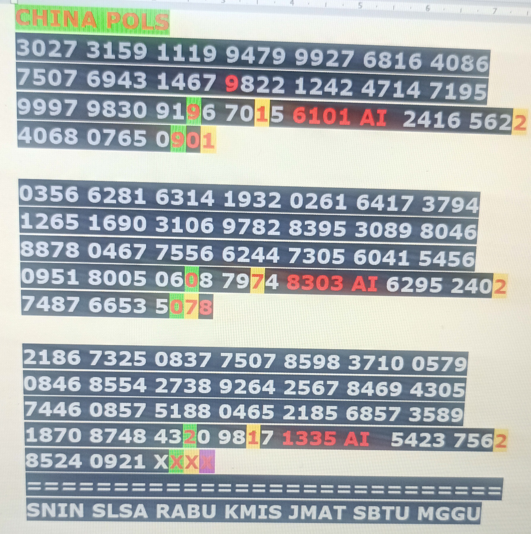 MASTER CHINAPOOLS Sabtu, 27-09-2025 Merupakan Prediksi Otomatis yang menggabungkan Metode Kalender Togel Dengan Rumus-rumus kontrol yang sudah terbukti keakuratanya.Gunakan Aplikasi Rekap untuk mendapatkan LN TOP. Harap Maklum Jika kadang meleset MASTER CHINAPOOLS kita. Jadikan ini sebagai perbandingan saja dan tetap UPS
