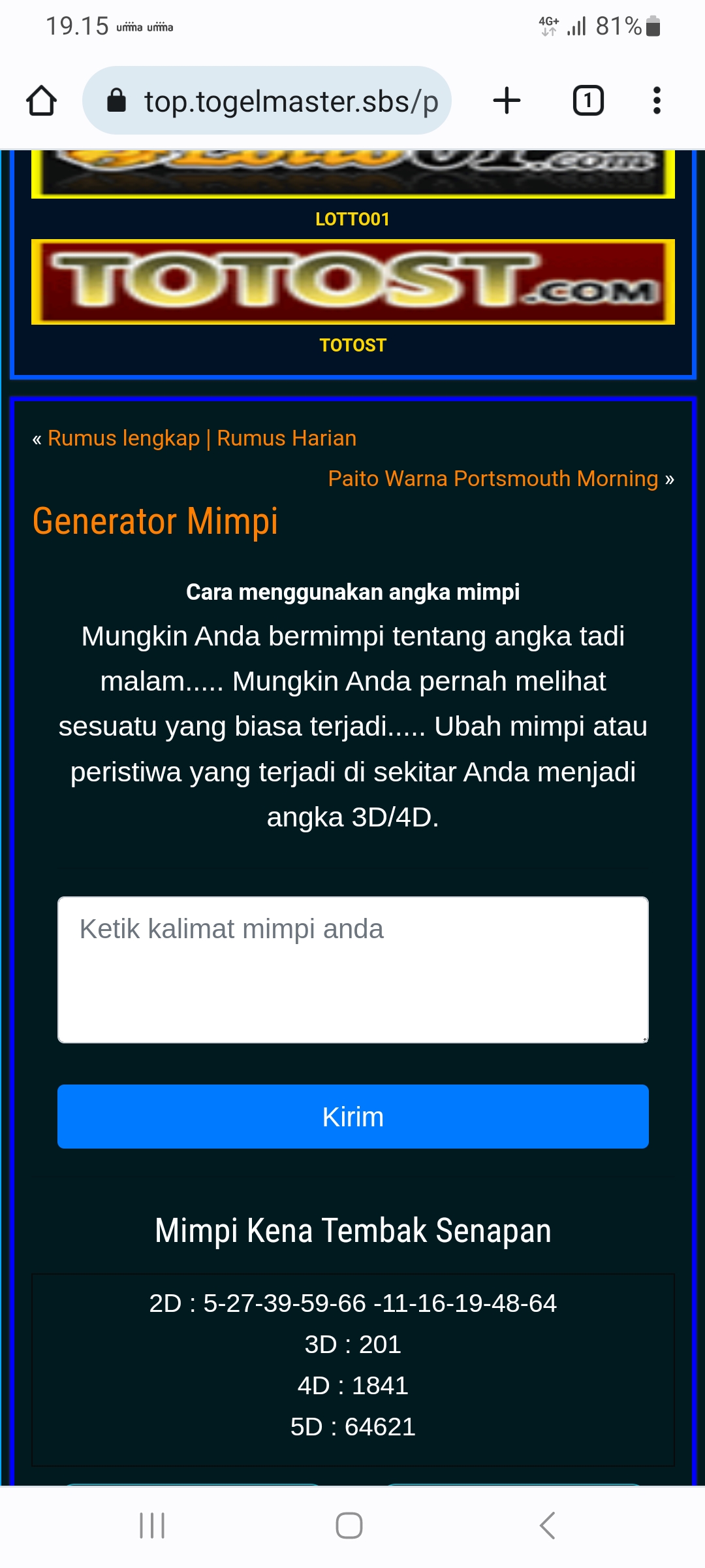 Demikian informasinya untuk mencari postingan sebelumnya.Posting komentar telah kami setting akan langsung publish jika posting komentar sebelumnya telah diaprove oleh admin, dan jika setiap posting selalu moderasi (minta persetujuan admin) berarti nickname atau emailnya tidak support, silahkan ganti nickname dan emailnya dengan yang lain yang tersupport, disarankan untuk gunakan nickname dan email postingan tidak menggunakan nama konotatif (spam) serta kontras ke bahasa indonesia karena blog ini kami setting dengan komentar dari visitor indonesia, serta berkomentar dengan bahasa yang baik tidak mengandung text konotatif atau text yang biasa digunakan penjual jamu (spam) karena plugin akismet akan moderasikan semua postingan yang sering ditandakan spam oleh pengguna wordpress, dan disarankan juga bikin gravatar agar postingannya lebih valid, pelajari cara bikin gravatar di http://togelmaster.info/gravatar.Allrekan master prediktor dan visitor bebas posting share prediksi apapun atau berkomentar tanya jawab yang ada kaitan dengan prediksi atau hasil prediksi master prediktor dll, tapi kami mohonkan untuk menjaga kenyamanan room dengan tidak posting mengundang kegaduhan menimbulkan saling hujat antara master prediktor, jika hujat bandot keluarkan result diluar nalar atau jauh melenceng dari prediksi rekan-rekan master prediksi dipersilahkan serta kami melarang posting komentar dengan menyertakan no phone atau email atau kontak yang bisa dihubungi di form komentarnya karena beresiko dihubungi oleh orang yang tidak bertanggung jawab akan merugikannya, ini dunia maya kawan! banyak penipu berkeliaran, dan jangan percaya sama penjual jamu (member prediksi) itu semua modus kuno hanya untuk menipu :D