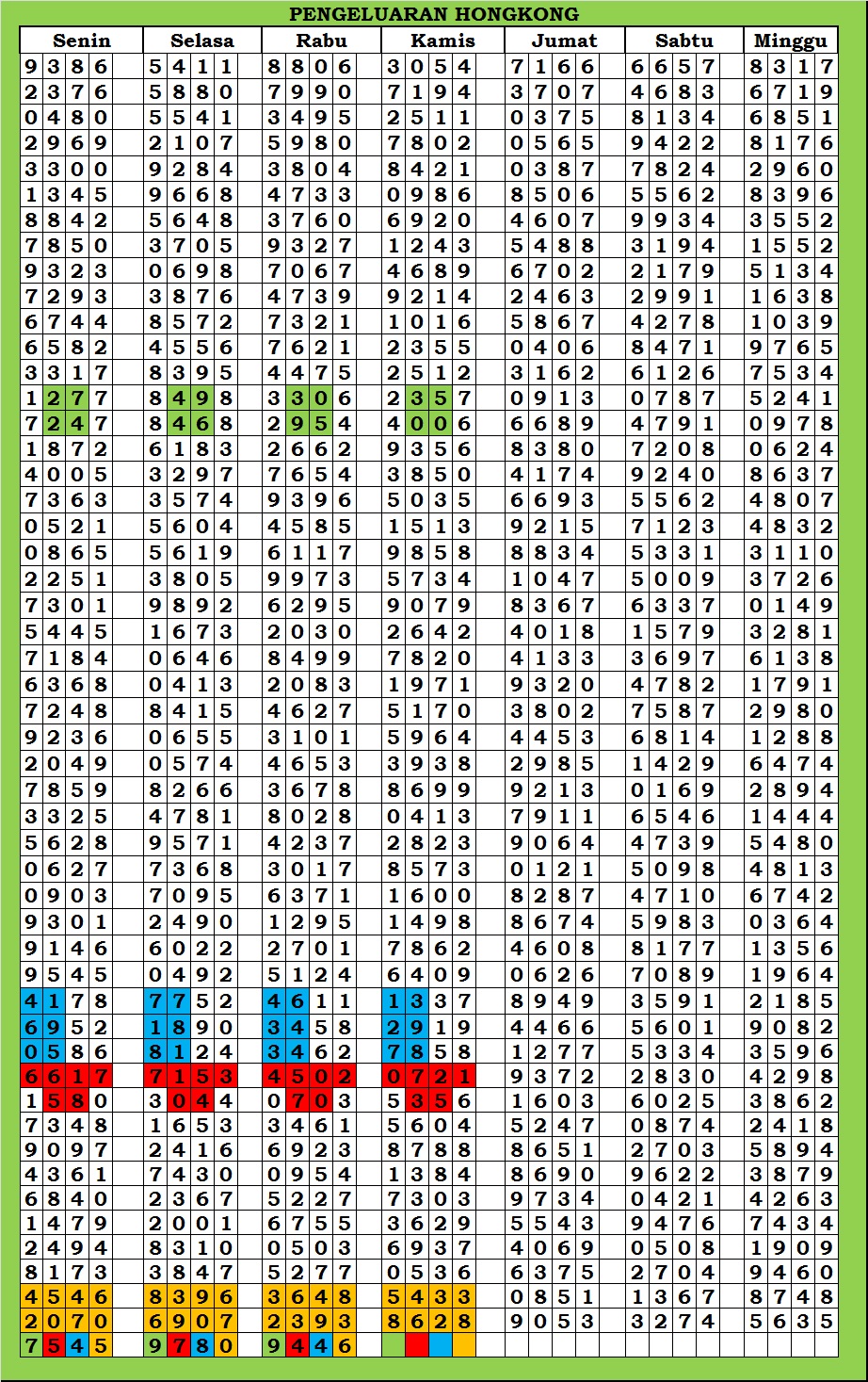 MASTER HONGKONG Selasa, 07-10-2025 Merupakan Prediksi Otomatis yang menggabungkan Metode Kalender Togel Dengan Rumus-rumus kontrol yang sudah terbukti keakuratanya.Gunakan Aplikasi Rekap untuk mendapatkan LN TOP. Harap Maklum Jika kadang meleset MASTER HONGKONG kita. Jadikan ini sebagai perbandingan saja dan tetap UPS