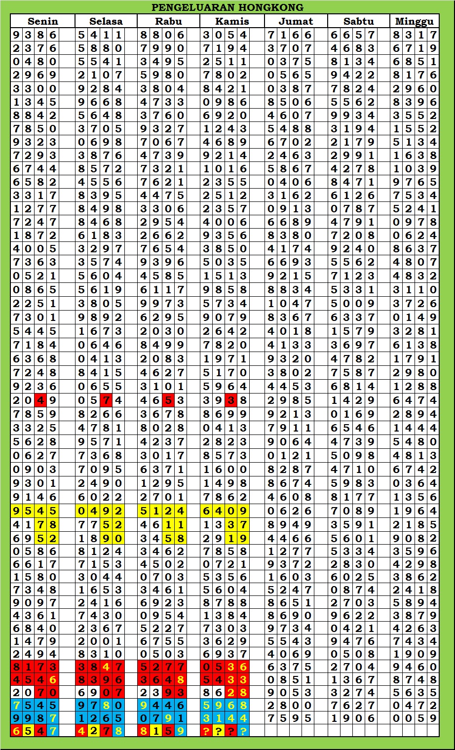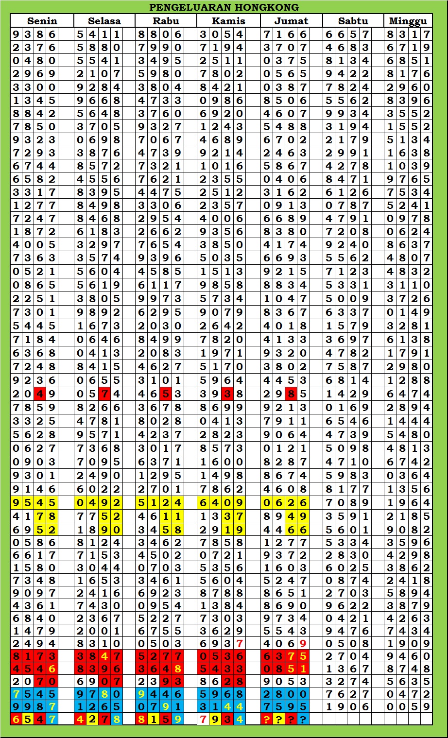MASTER HONGKONG Selasa, 07-10-2025 Merupakan Prediksi Otomatis yang menggabungkan Metode Kalender Togel Dengan Rumus-rumus kontrol yang sudah terbukti keakuratanya.Gunakan Aplikasi Rekap untuk mendapatkan LN TOP. Harap Maklum Jika kadang meleset MASTER HONGKONG kita. Jadikan ini sebagai perbandingan saja dan tetap UPS