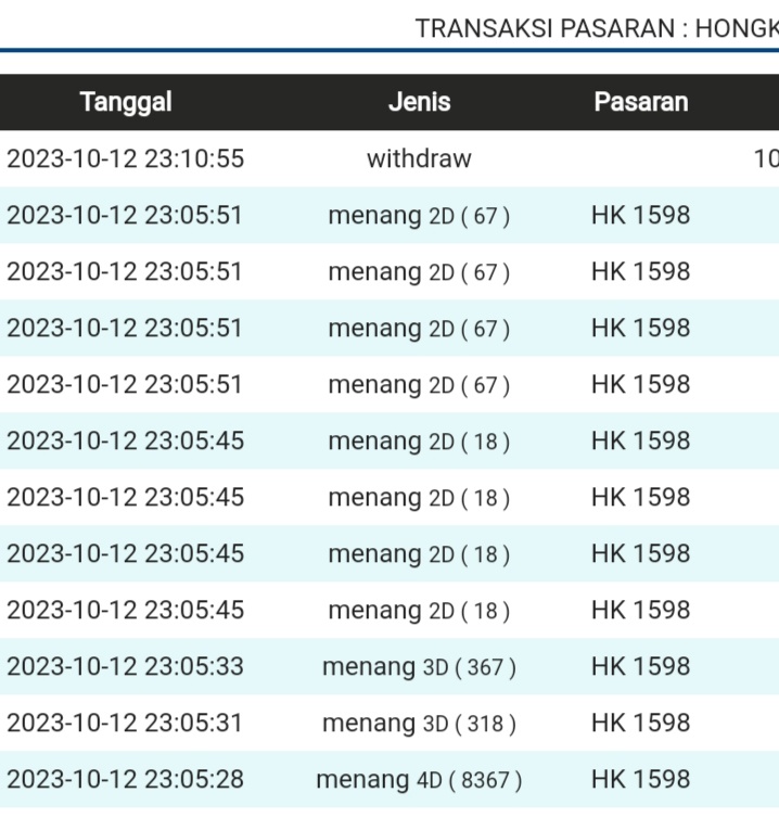 MASTER HONGKONG Selasa, 07-10-2025 Merupakan Prediksi Otomatis yang menggabungkan Metode Kalender Togel Dengan Rumus-rumus kontrol yang sudah terbukti keakuratanya.Gunakan Aplikasi Rekap untuk mendapatkan LN TOP. Harap Maklum Jika kadang meleset MASTER HONGKONG kita. Jadikan ini sebagai perbandingan saja dan tetap UPS