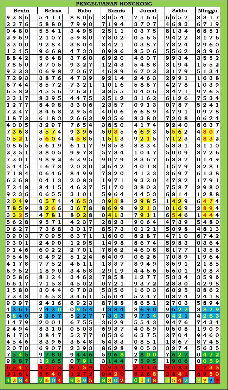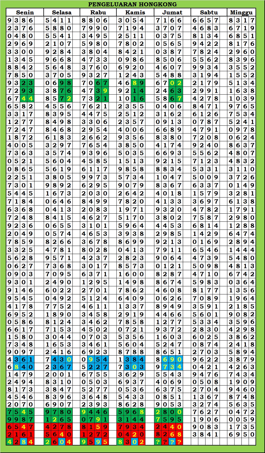 MASTER HONGKONG Selasa, 07-10-2025 Merupakan Prediksi Otomatis yang menggabungkan Metode Kalender Togel Dengan Rumus-rumus kontrol yang sudah terbukti keakuratanya.Gunakan Aplikasi Rekap untuk mendapatkan LN TOP. Harap Maklum Jika kadang meleset MASTER HONGKONG kita. Jadikan ini sebagai perbandingan saja dan tetap UPS