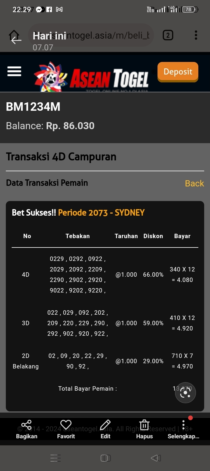 saya depo 100 ribu ikut pasaran Sidney di proses