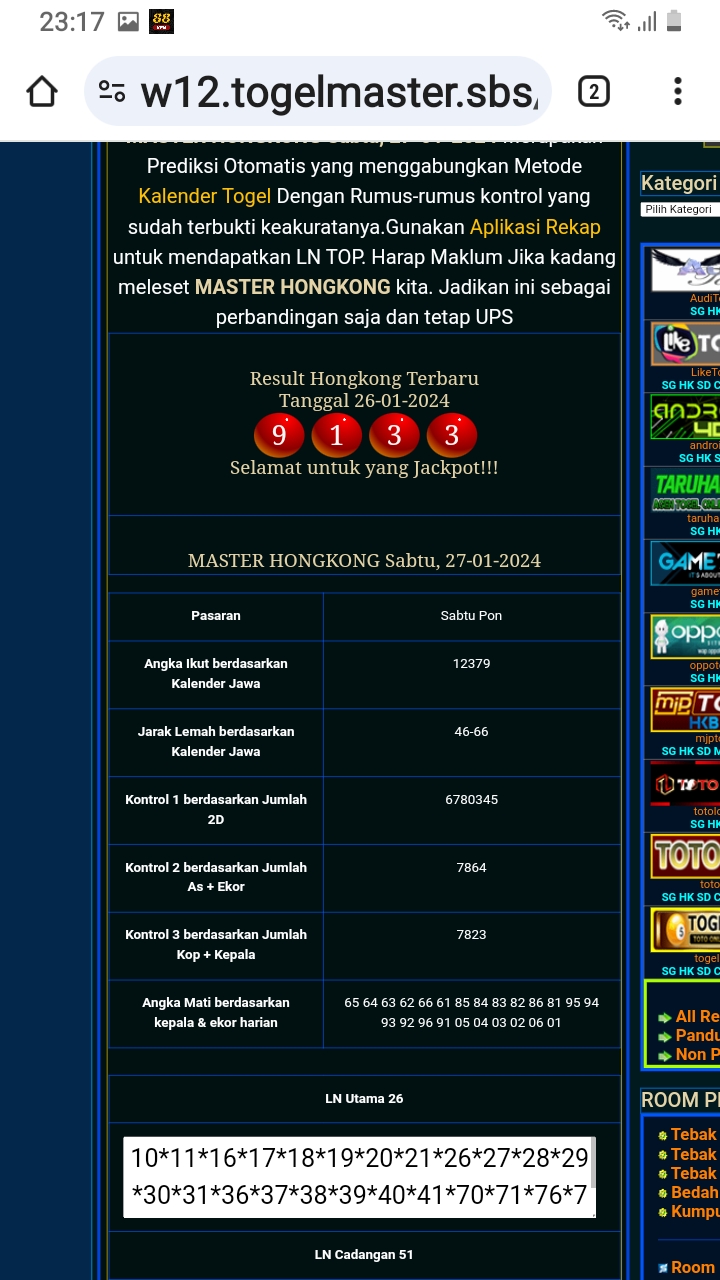 MASTER HONGKONG Minggu, 05-10-2025 Merupakan Prediksi Otomatis yang menggabungkan Metode Kalender Togel Dengan Rumus-rumus kontrol yang sudah terbukti keakuratanya.Gunakan Aplikasi Rekap untuk mendapatkan LN TOP. Harap Maklum Jika kadang meleset MASTER HONGKONG kita. Jadikan ini sebagai perbandingan saja dan tetap UPS