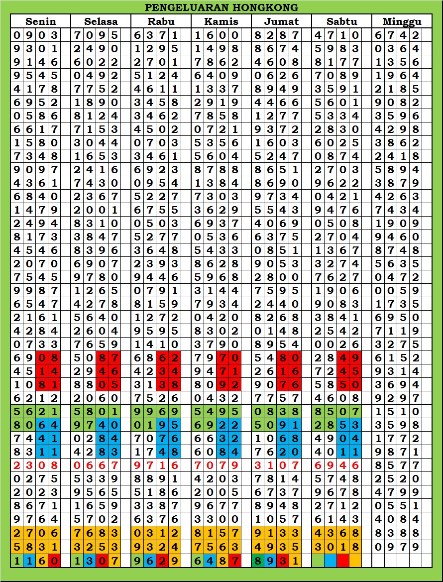 MASTER HONGKONG Sabtu, 04-10-2025 Merupakan Prediksi Otomatis yang menggabungkan Metode Kalender Togel Dengan Rumus-rumus kontrol yang sudah terbukti keakuratanya.Gunakan Aplikasi Rekap untuk mendapatkan LN TOP. Harap Maklum Jika kadang meleset MASTER HONGKONG kita. Jadikan ini sebagai perbandingan saja dan tetap UPS