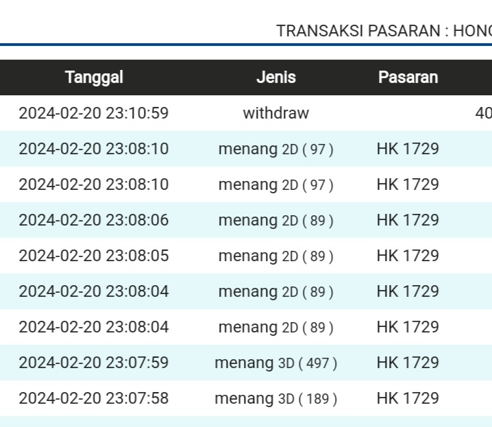 MASTER HONGKONG Sabtu, 04-10-2025 Merupakan Prediksi Otomatis yang menggabungkan Metode Kalender Togel Dengan Rumus-rumus kontrol yang sudah terbukti keakuratanya.Gunakan Aplikasi Rekap untuk mendapatkan LN TOP. Harap Maklum Jika kadang meleset MASTER HONGKONG kita. Jadikan ini sebagai perbandingan saja dan tetap UPS