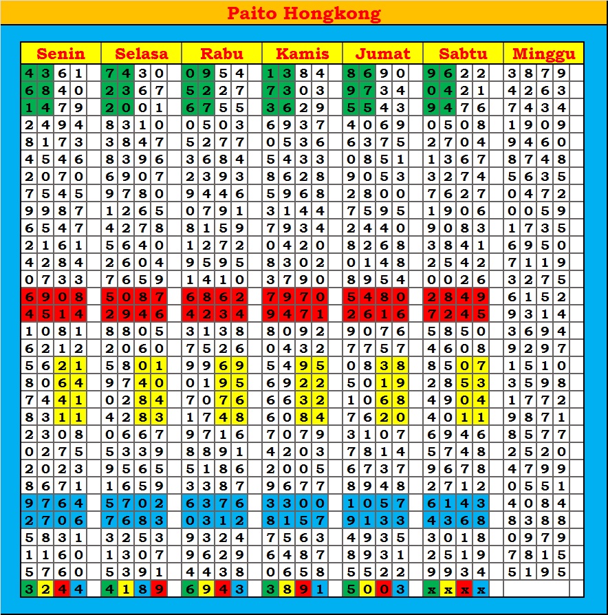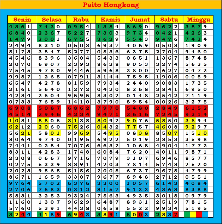 MASTER HONGKONG Sabtu, 04-10-2025 Merupakan Prediksi Otomatis yang menggabungkan Metode Kalender Togel Dengan Rumus-rumus kontrol yang sudah terbukti keakuratanya.Gunakan Aplikasi Rekap untuk mendapatkan LN TOP. Harap Maklum Jika kadang meleset MASTER HONGKONG kita. Jadikan ini sebagai perbandingan saja dan tetap UPS