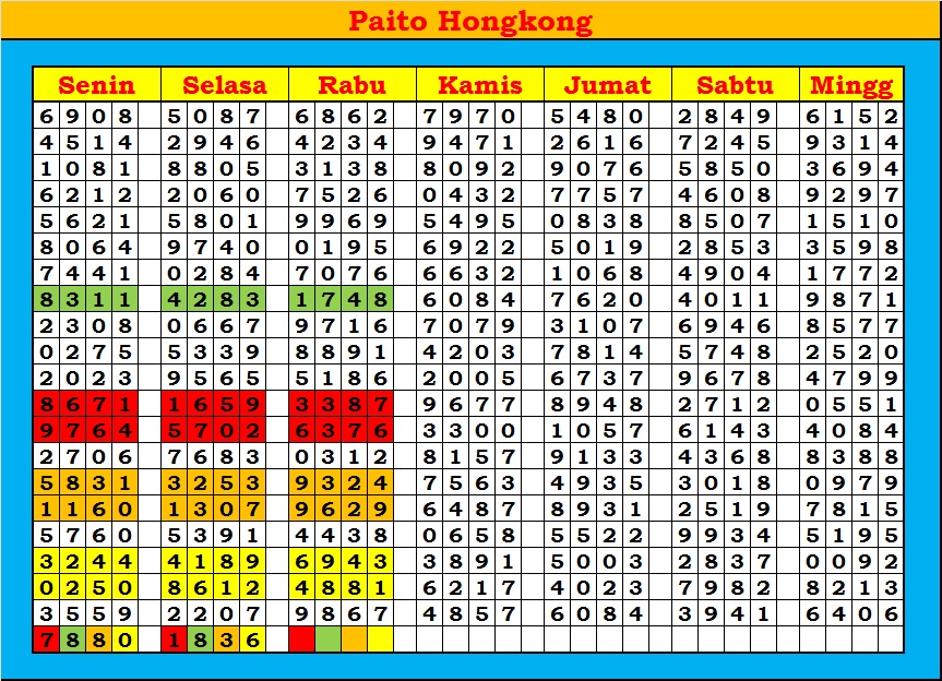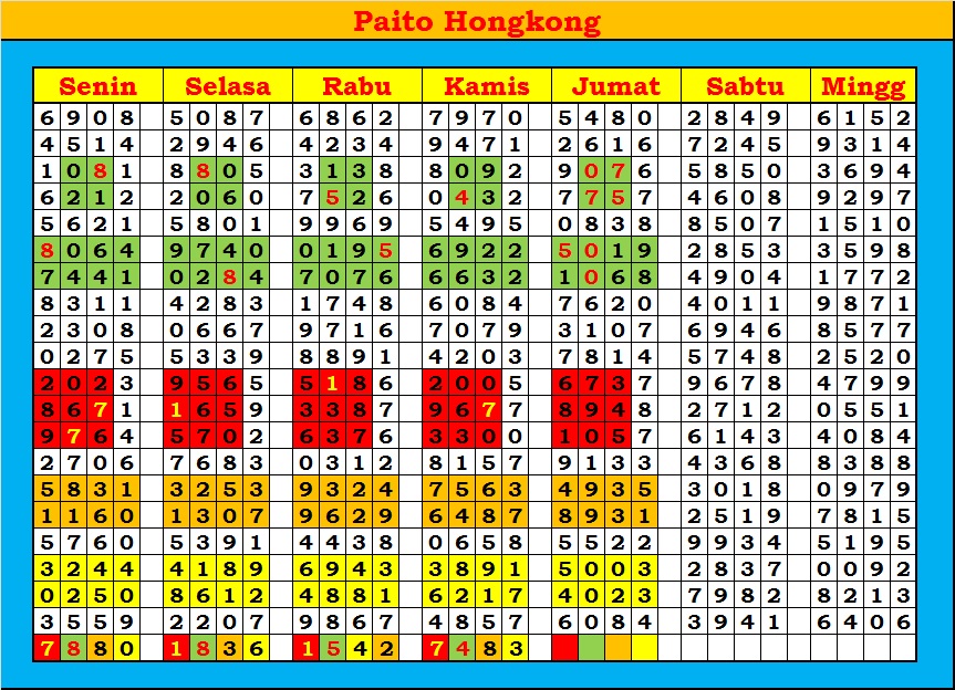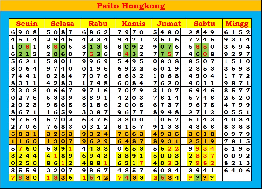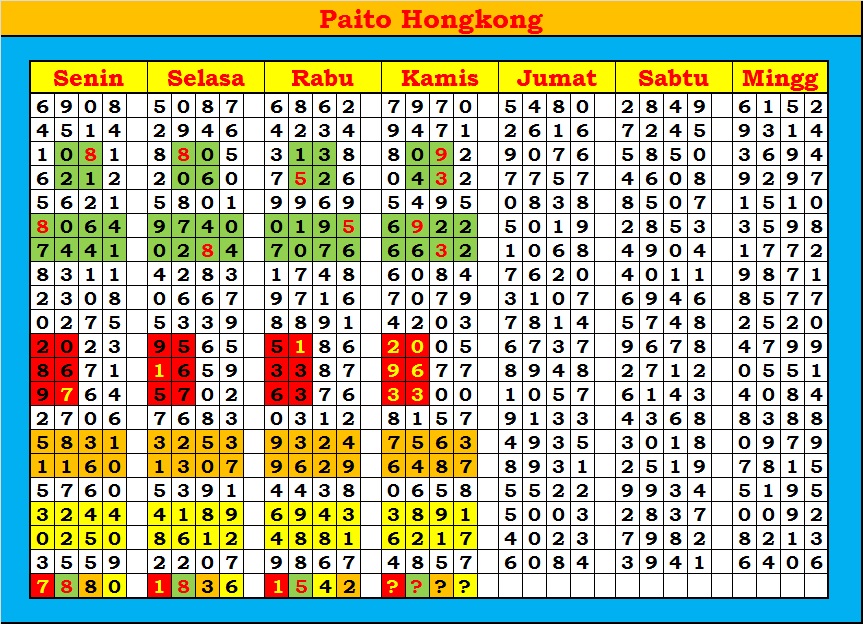 MASTER HONGKONG Sabtu, 04-10-2025 Merupakan Prediksi Otomatis yang menggabungkan Metode Kalender Togel Dengan Rumus-rumus kontrol yang sudah terbukti keakuratanya.Gunakan Aplikasi Rekap untuk mendapatkan LN TOP. Harap Maklum Jika kadang meleset MASTER HONGKONG kita. Jadikan ini sebagai perbandingan saja dan tetap UPS