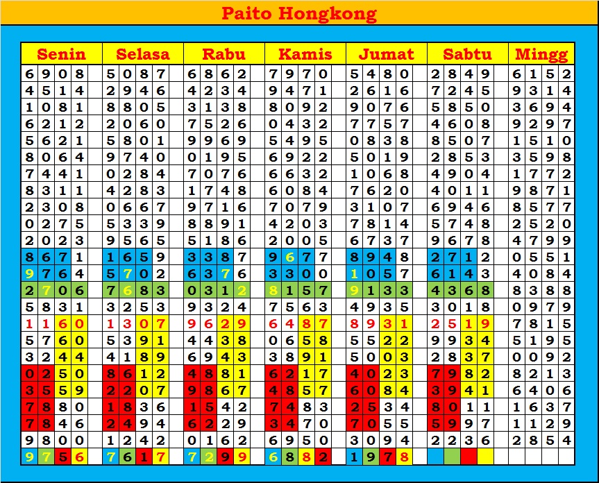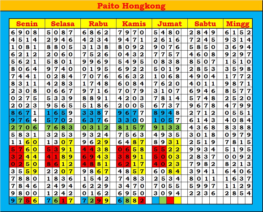 MASTER HONGKONG Sabtu, 04-10-2025 Merupakan Prediksi Otomatis yang menggabungkan Metode Kalender Togel Dengan Rumus-rumus kontrol yang sudah terbukti keakuratanya.Gunakan Aplikasi Rekap untuk mendapatkan LN TOP. Harap Maklum Jika kadang meleset MASTER HONGKONG kita. Jadikan ini sebagai perbandingan saja dan tetap UPS