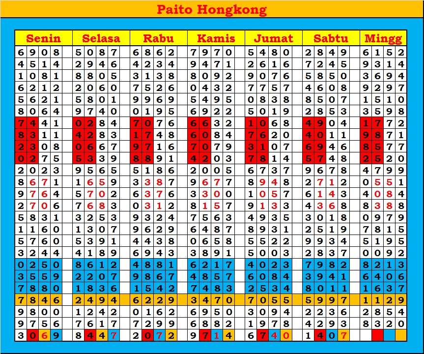 MASTER HONGKONG Sabtu, 04-10-2025 Merupakan Prediksi Otomatis yang menggabungkan Metode Kalender Togel Dengan Rumus-rumus kontrol yang sudah terbukti keakuratanya.Gunakan Aplikasi Rekap untuk mendapatkan LN TOP. Harap Maklum Jika kadang meleset MASTER HONGKONG kita. Jadikan ini sebagai perbandingan saja dan tetap UPS