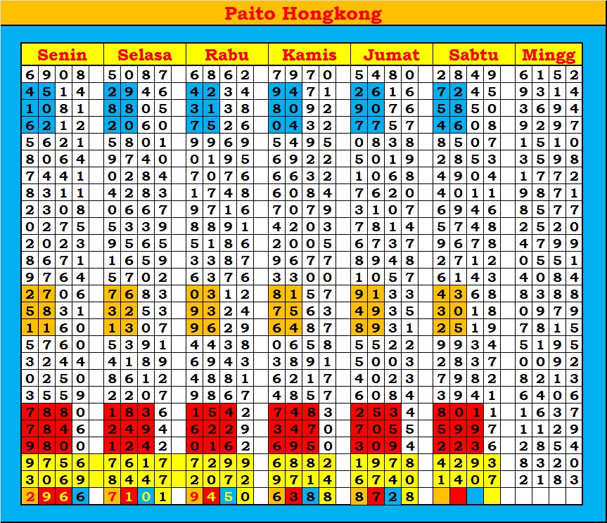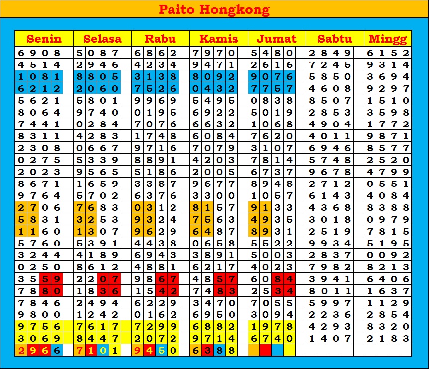 MASTER HONGKONG Sabtu, 04-10-2025 Merupakan Prediksi Otomatis yang menggabungkan Metode Kalender Togel Dengan Rumus-rumus kontrol yang sudah terbukti keakuratanya.Gunakan Aplikasi Rekap untuk mendapatkan LN TOP. Harap Maklum Jika kadang meleset MASTER HONGKONG kita. Jadikan ini sebagai perbandingan saja dan tetap UPS