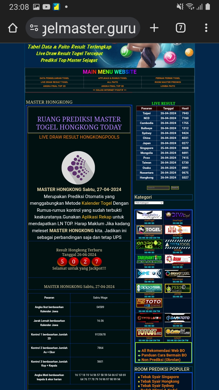 MASTER HONGKONG Sabtu, 04-10-2025 Merupakan Prediksi Otomatis yang menggabungkan Metode Kalender Togel Dengan Rumus-rumus kontrol yang sudah terbukti keakuratanya.Gunakan Aplikasi Rekap untuk mendapatkan LN TOP. Harap Maklum Jika kadang meleset MASTER HONGKONG kita. Jadikan ini sebagai perbandingan saja dan tetap UPS