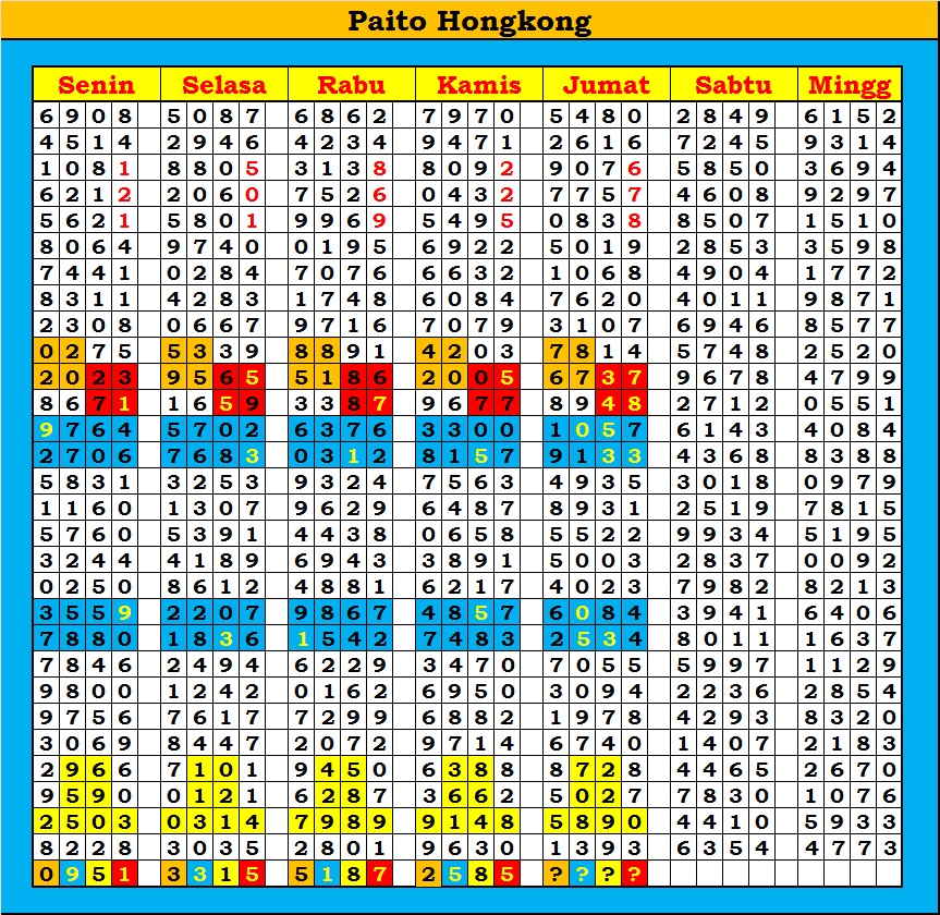 MASTER HONGKONG Sabtu, 04-10-2025 Merupakan Prediksi Otomatis yang menggabungkan Metode Kalender Togel Dengan Rumus-rumus kontrol yang sudah terbukti keakuratanya.Gunakan Aplikasi Rekap untuk mendapatkan LN TOP. Harap Maklum Jika kadang meleset MASTER HONGKONG kita. Jadikan ini sebagai perbandingan saja dan tetap UPS