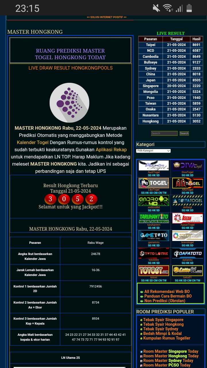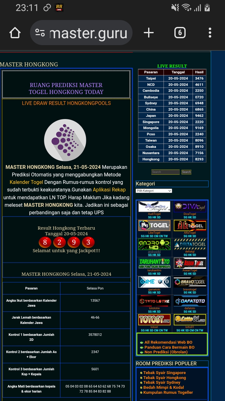 MASTER HONGKONG Sabtu, 04-10-2025 Merupakan Prediksi Otomatis yang menggabungkan Metode Kalender Togel Dengan Rumus-rumus kontrol yang sudah terbukti keakuratanya.Gunakan Aplikasi Rekap untuk mendapatkan LN TOP. Harap Maklum Jika kadang meleset MASTER HONGKONG kita. Jadikan ini sebagai perbandingan saja dan tetap UPS