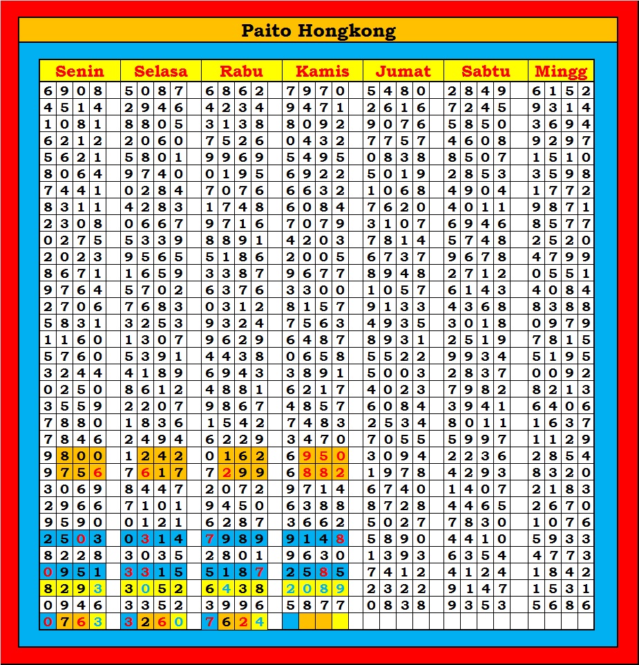 MASTER HONGKONG Sabtu, 04-10-2025 Merupakan Prediksi Otomatis yang menggabungkan Metode Kalender Togel Dengan Rumus-rumus kontrol yang sudah terbukti keakuratanya.Gunakan Aplikasi Rekap untuk mendapatkan LN TOP. Harap Maklum Jika kadang meleset MASTER HONGKONG kita. Jadikan ini sebagai perbandingan saja dan tetap UPS