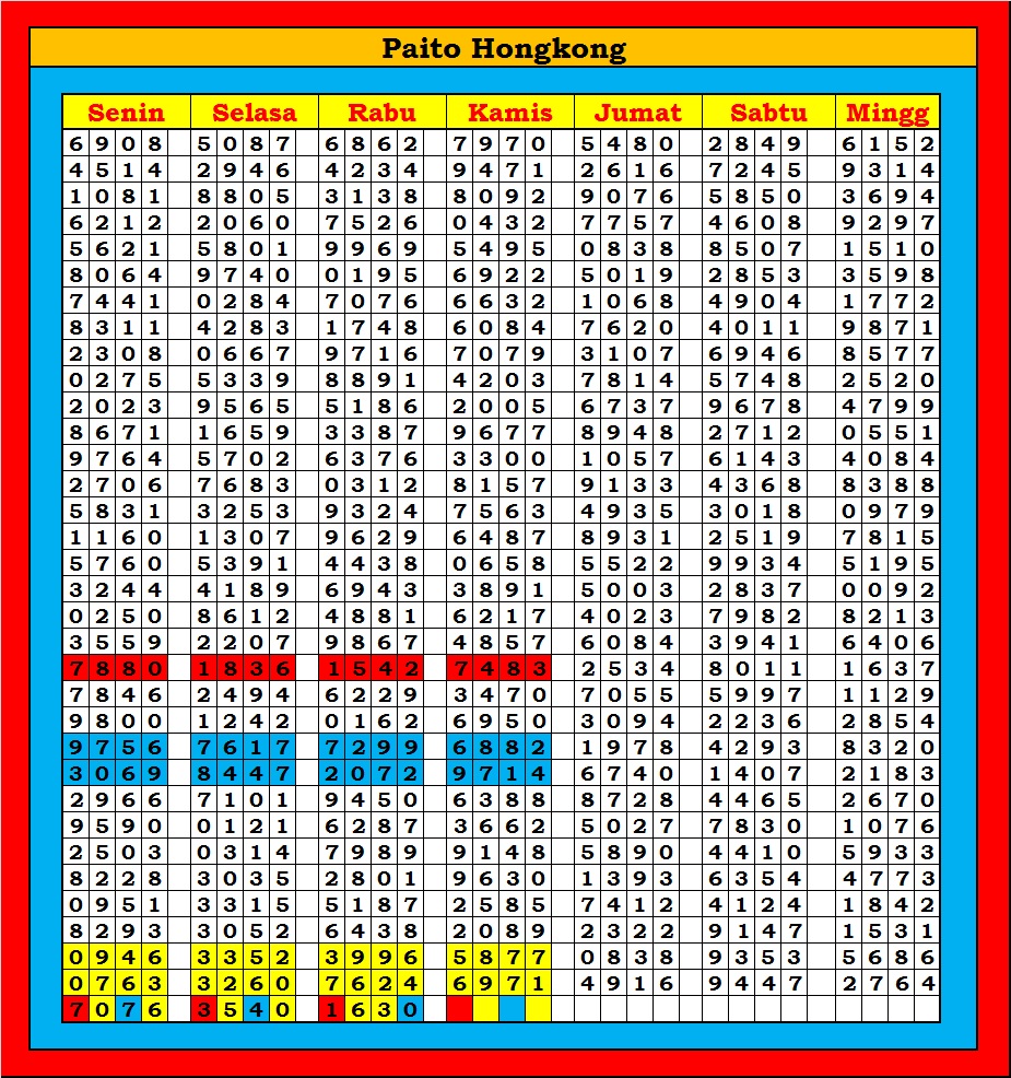 MASTER HONGKONG Sabtu, 04-10-2025 Merupakan Prediksi Otomatis yang menggabungkan Metode Kalender Togel Dengan Rumus-rumus kontrol yang sudah terbukti keakuratanya.Gunakan Aplikasi Rekap untuk mendapatkan LN TOP. Harap Maklum Jika kadang meleset MASTER HONGKONG kita. Jadikan ini sebagai perbandingan saja dan tetap UPS
