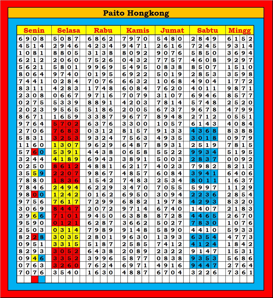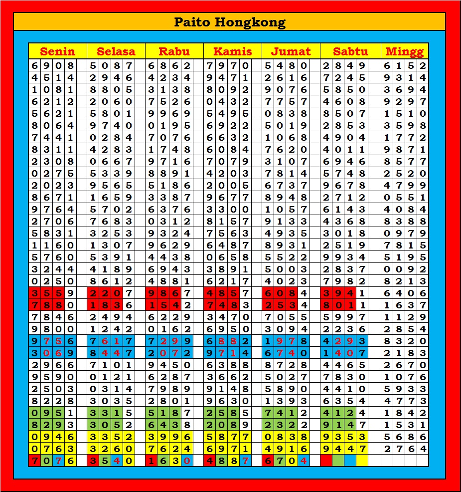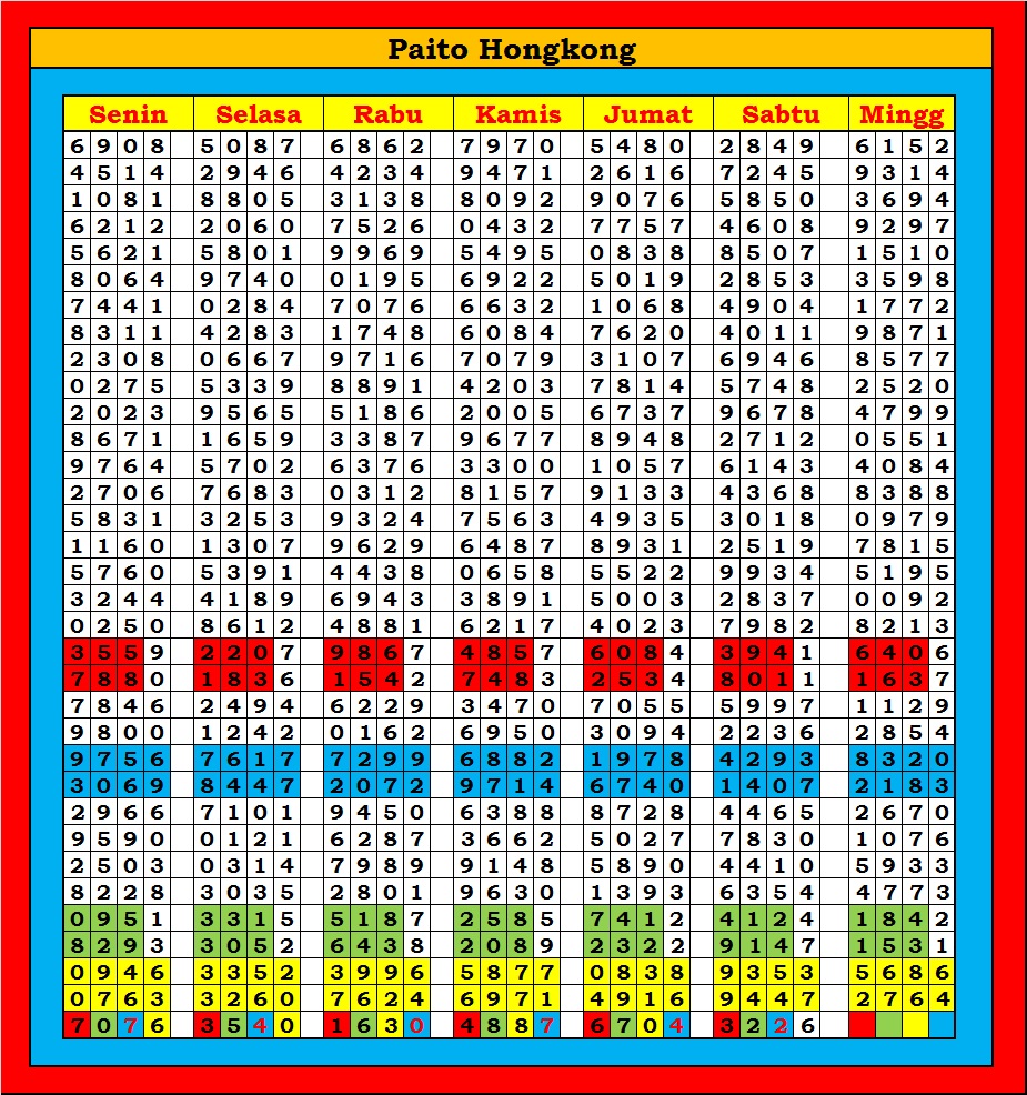 MASTER HONGKONG Sabtu, 04-10-2025 Merupakan Prediksi Otomatis yang menggabungkan Metode Kalender Togel Dengan Rumus-rumus kontrol yang sudah terbukti keakuratanya.Gunakan Aplikasi Rekap untuk mendapatkan LN TOP. Harap Maklum Jika kadang meleset MASTER HONGKONG kita. Jadikan ini sebagai perbandingan saja dan tetap UPS