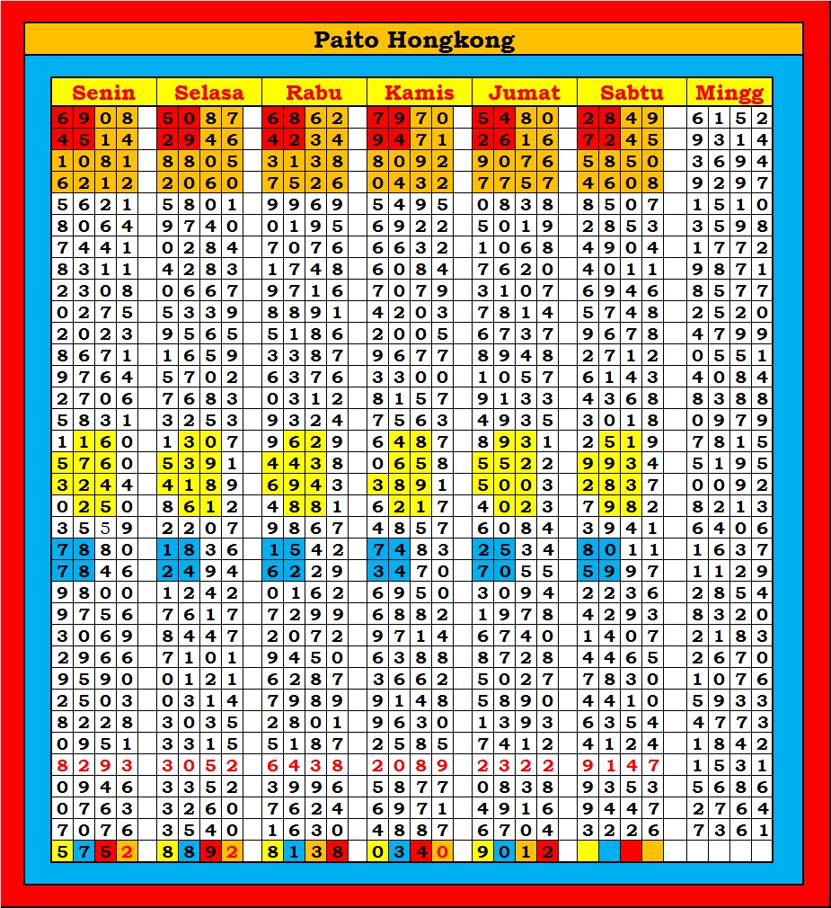 MASTER HONGKONG Sabtu, 04-10-2025 Merupakan Prediksi Otomatis yang menggabungkan Metode Kalender Togel Dengan Rumus-rumus kontrol yang sudah terbukti keakuratanya.Gunakan Aplikasi Rekap untuk mendapatkan LN TOP. Harap Maklum Jika kadang meleset MASTER HONGKONG kita. Jadikan ini sebagai perbandingan saja dan tetap UPS