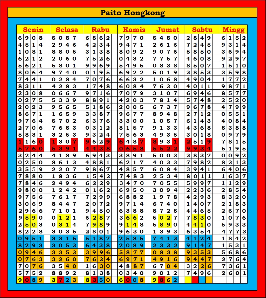 MASTER HONGKONG Sabtu, 04-10-2025 Merupakan Prediksi Otomatis yang menggabungkan Metode Kalender Togel Dengan Rumus-rumus kontrol yang sudah terbukti keakuratanya.Gunakan Aplikasi Rekap untuk mendapatkan LN TOP. Harap Maklum Jika kadang meleset MASTER HONGKONG kita. Jadikan ini sebagai perbandingan saja dan tetap UPS