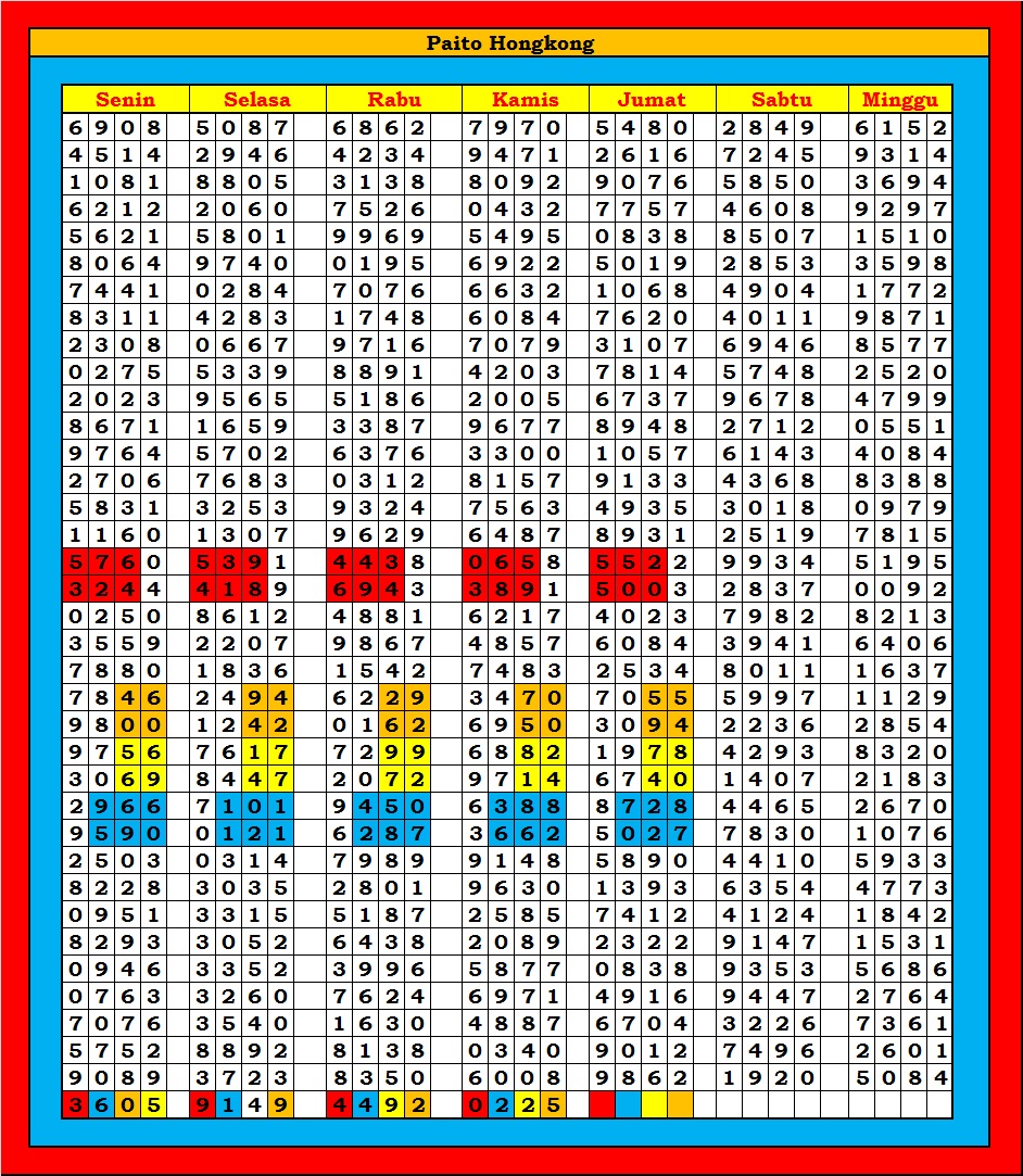 MASTER HONGKONG Sabtu, 04-10-2025 Merupakan Prediksi Otomatis yang menggabungkan Metode Kalender Togel Dengan Rumus-rumus kontrol yang sudah terbukti keakuratanya.Gunakan Aplikasi Rekap untuk mendapatkan LN TOP. Harap Maklum Jika kadang meleset MASTER HONGKONG kita. Jadikan ini sebagai perbandingan saja dan tetap UPS