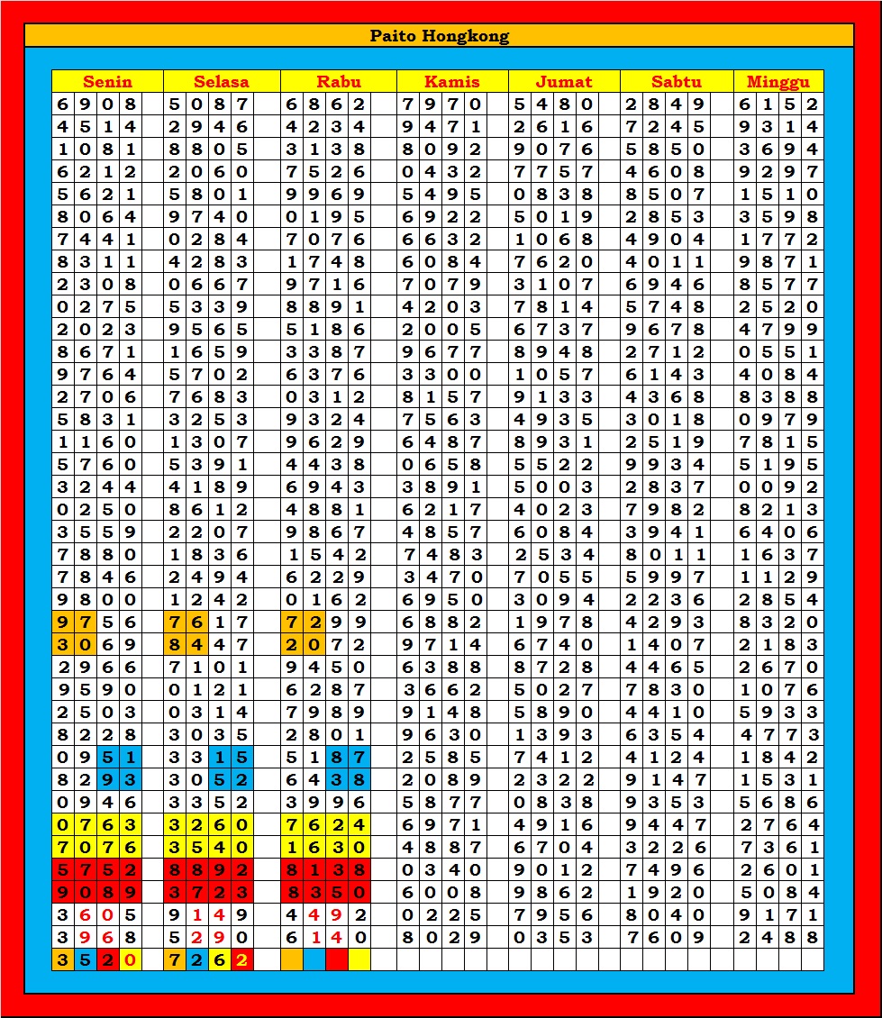 MASTER HONGKONG Sabtu, 04-10-2025 Merupakan Prediksi Otomatis yang menggabungkan Metode Kalender Togel Dengan Rumus-rumus kontrol yang sudah terbukti keakuratanya.Gunakan Aplikasi Rekap untuk mendapatkan LN TOP. Harap Maklum Jika kadang meleset MASTER HONGKONG kita. Jadikan ini sebagai perbandingan saja dan tetap UPS