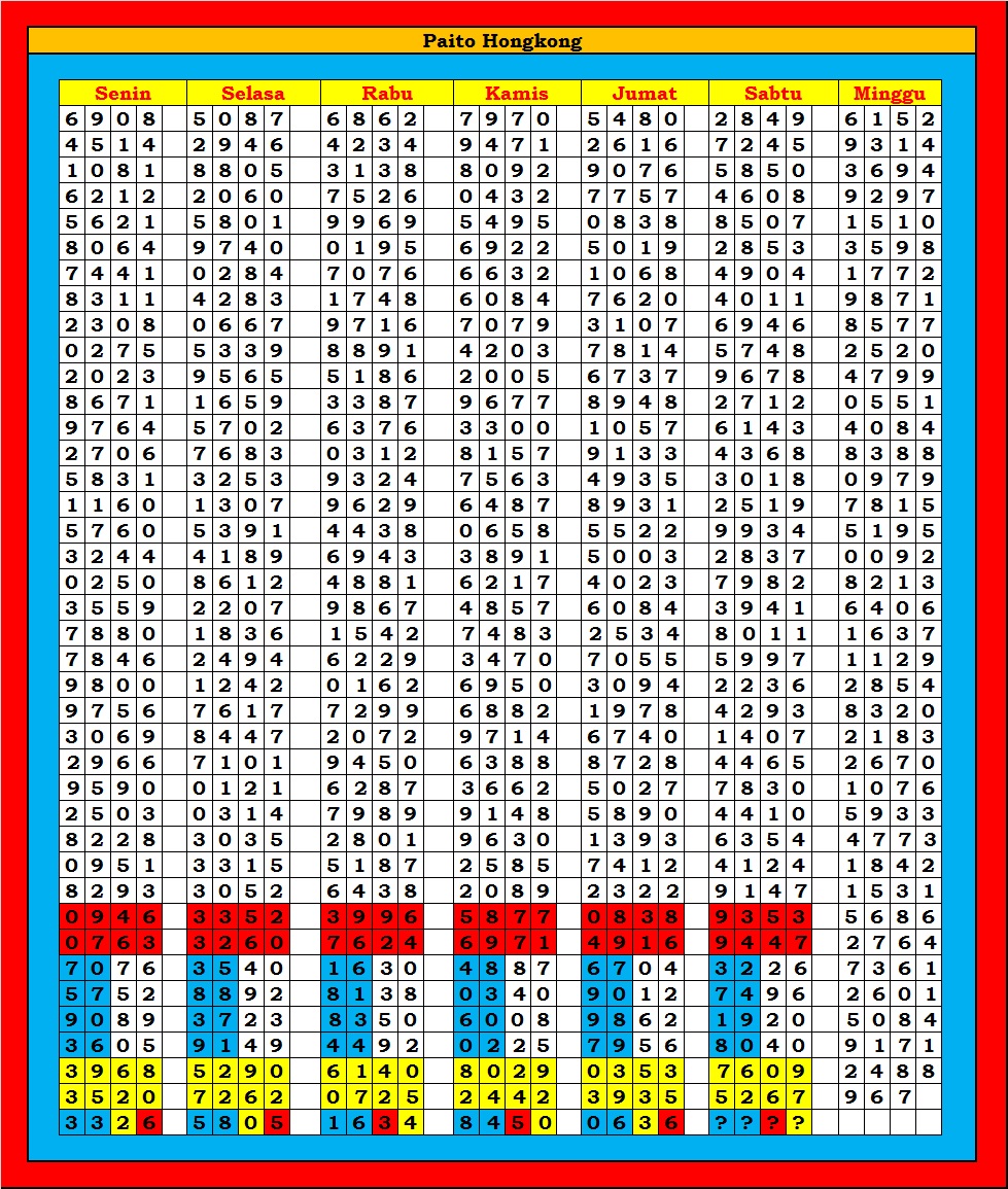 MASTER HONGKONG Jumat, 03-10-2025 Merupakan Prediksi Otomatis yang menggabungkan Metode Kalender Togel Dengan Rumus-rumus kontrol yang sudah terbukti keakuratanya.Gunakan Aplikasi Rekap untuk mendapatkan LN TOP. Harap Maklum Jika kadang meleset MASTER HONGKONG kita. Jadikan ini sebagai perbandingan saja dan tetap UPS