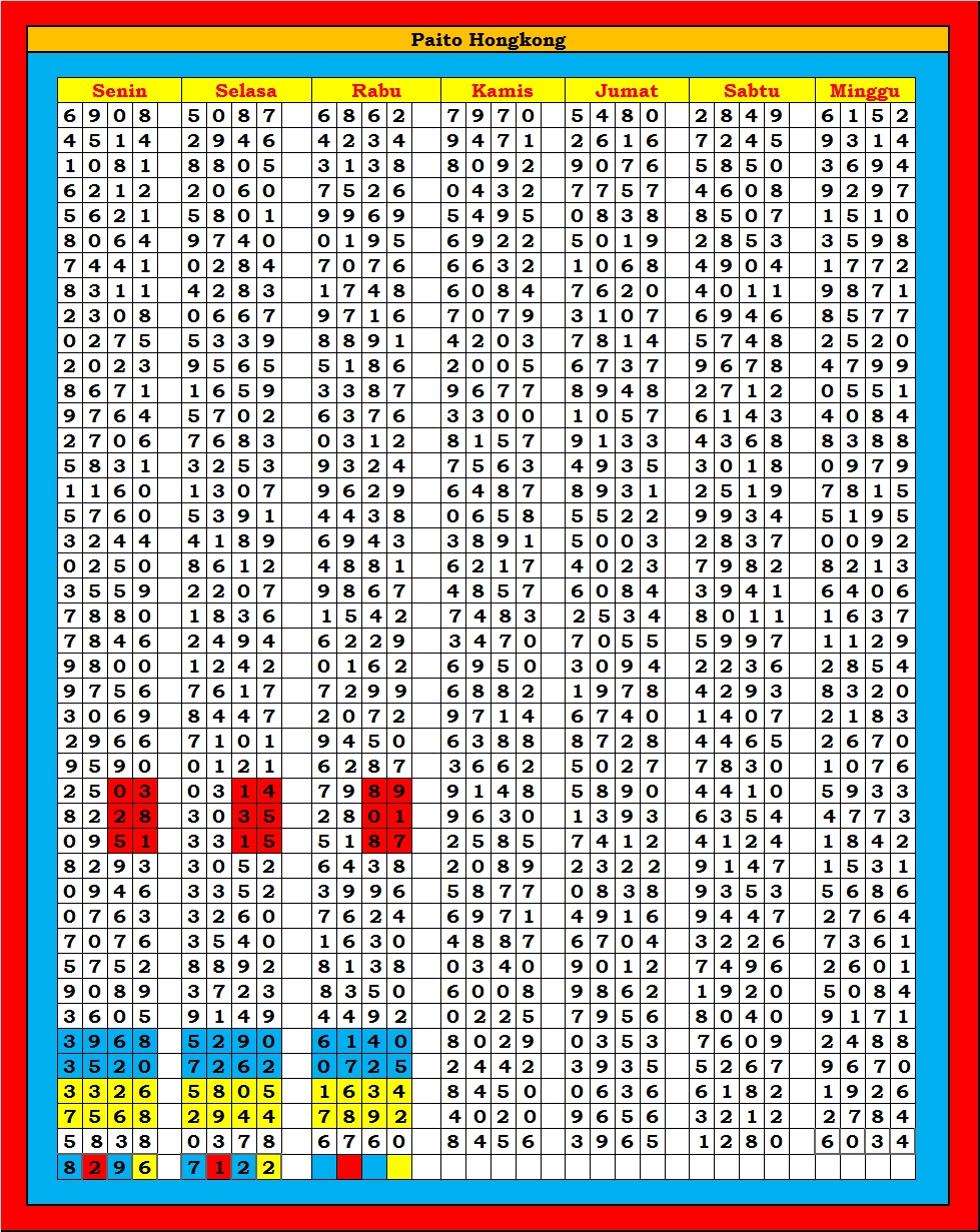 MASTER HONGKONG Jumat, 03-10-2025 Merupakan Prediksi Otomatis yang menggabungkan Metode Kalender Togel Dengan Rumus-rumus kontrol yang sudah terbukti keakuratanya.Gunakan Aplikasi Rekap untuk mendapatkan LN TOP. Harap Maklum Jika kadang meleset MASTER HONGKONG kita. Jadikan ini sebagai perbandingan saja dan tetap UPS