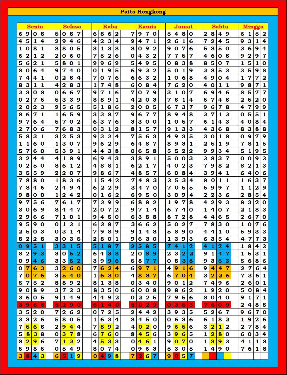 MASTER HONGKONG Jumat, 03-10-2025 Merupakan Prediksi Otomatis yang menggabungkan Metode Kalender Togel Dengan Rumus-rumus kontrol yang sudah terbukti keakuratanya.Gunakan Aplikasi Rekap untuk mendapatkan LN TOP. Harap Maklum Jika kadang meleset MASTER HONGKONG kita. Jadikan ini sebagai perbandingan saja dan tetap UPS
