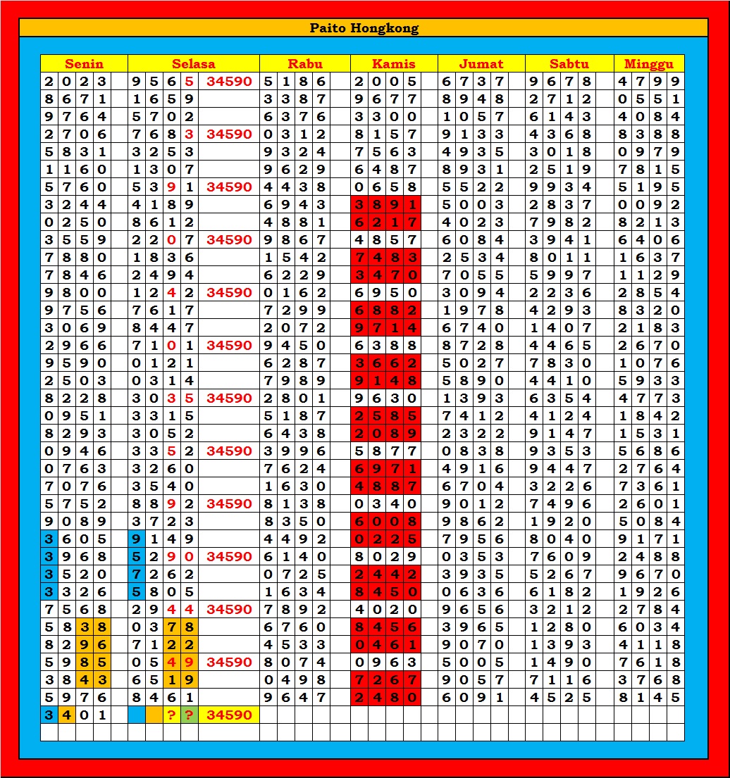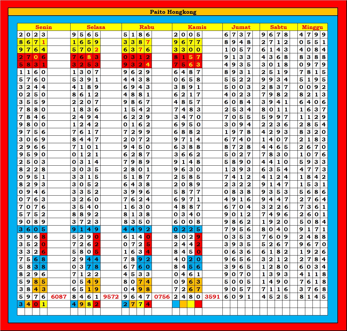 MASTER HONGKONG Jumat, 03-10-2025 Merupakan Prediksi Otomatis yang menggabungkan Metode Kalender Togel Dengan Rumus-rumus kontrol yang sudah terbukti keakuratanya.Gunakan Aplikasi Rekap untuk mendapatkan LN TOP. Harap Maklum Jika kadang meleset MASTER HONGKONG kita. Jadikan ini sebagai perbandingan saja dan tetap UPS