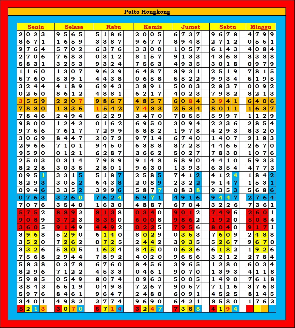 MASTER HONGKONG Jumat, 03-10-2025 Merupakan Prediksi Otomatis yang menggabungkan Metode Kalender Togel Dengan Rumus-rumus kontrol yang sudah terbukti keakuratanya.Gunakan Aplikasi Rekap untuk mendapatkan LN TOP. Harap Maklum Jika kadang meleset MASTER HONGKONG kita. Jadikan ini sebagai perbandingan saja dan tetap UPS