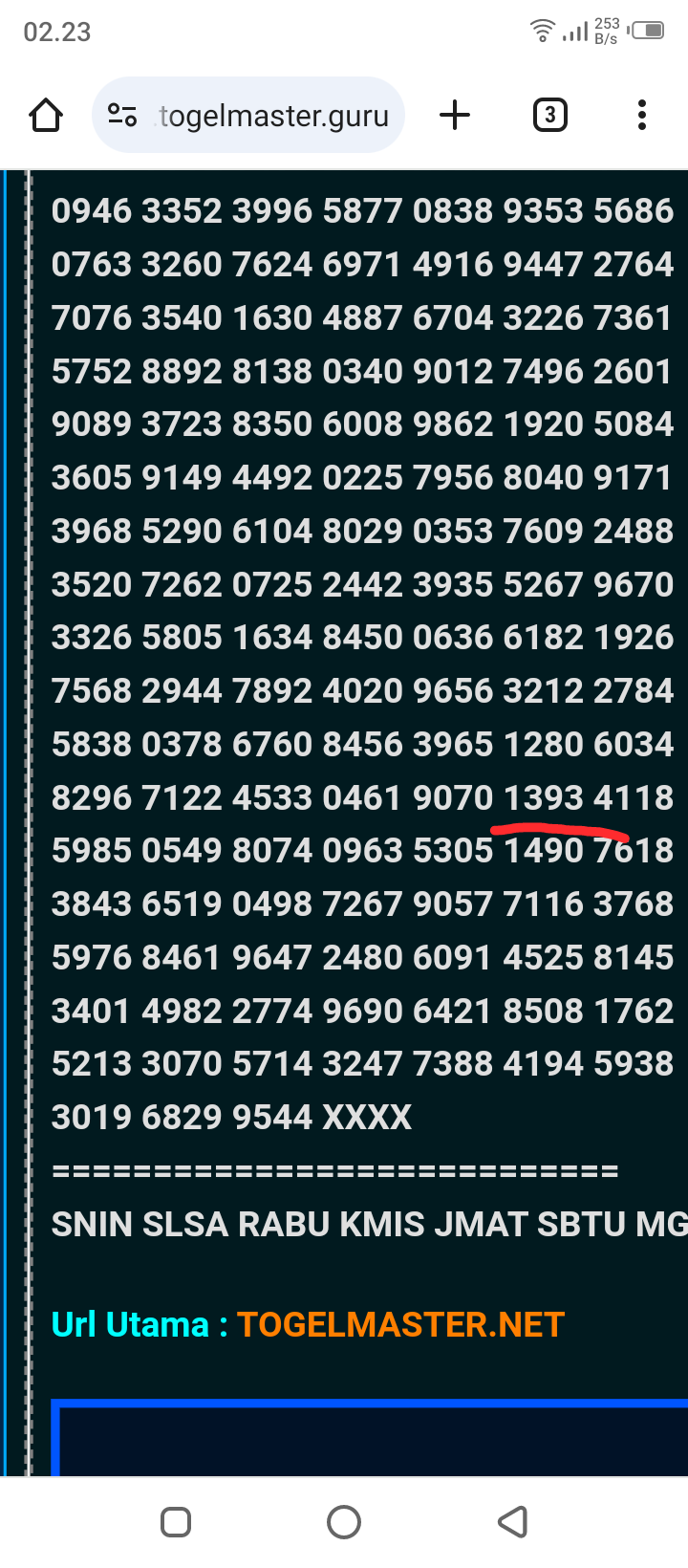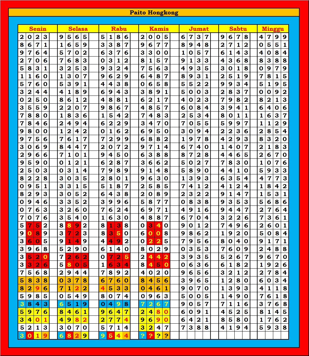 MASTER HONGKONG Jumat, 03-10-2025 Merupakan Prediksi Otomatis yang menggabungkan Metode Kalender Togel Dengan Rumus-rumus kontrol yang sudah terbukti keakuratanya.Gunakan Aplikasi Rekap untuk mendapatkan LN TOP. Harap Maklum Jika kadang meleset MASTER HONGKONG kita. Jadikan ini sebagai perbandingan saja dan tetap UPS