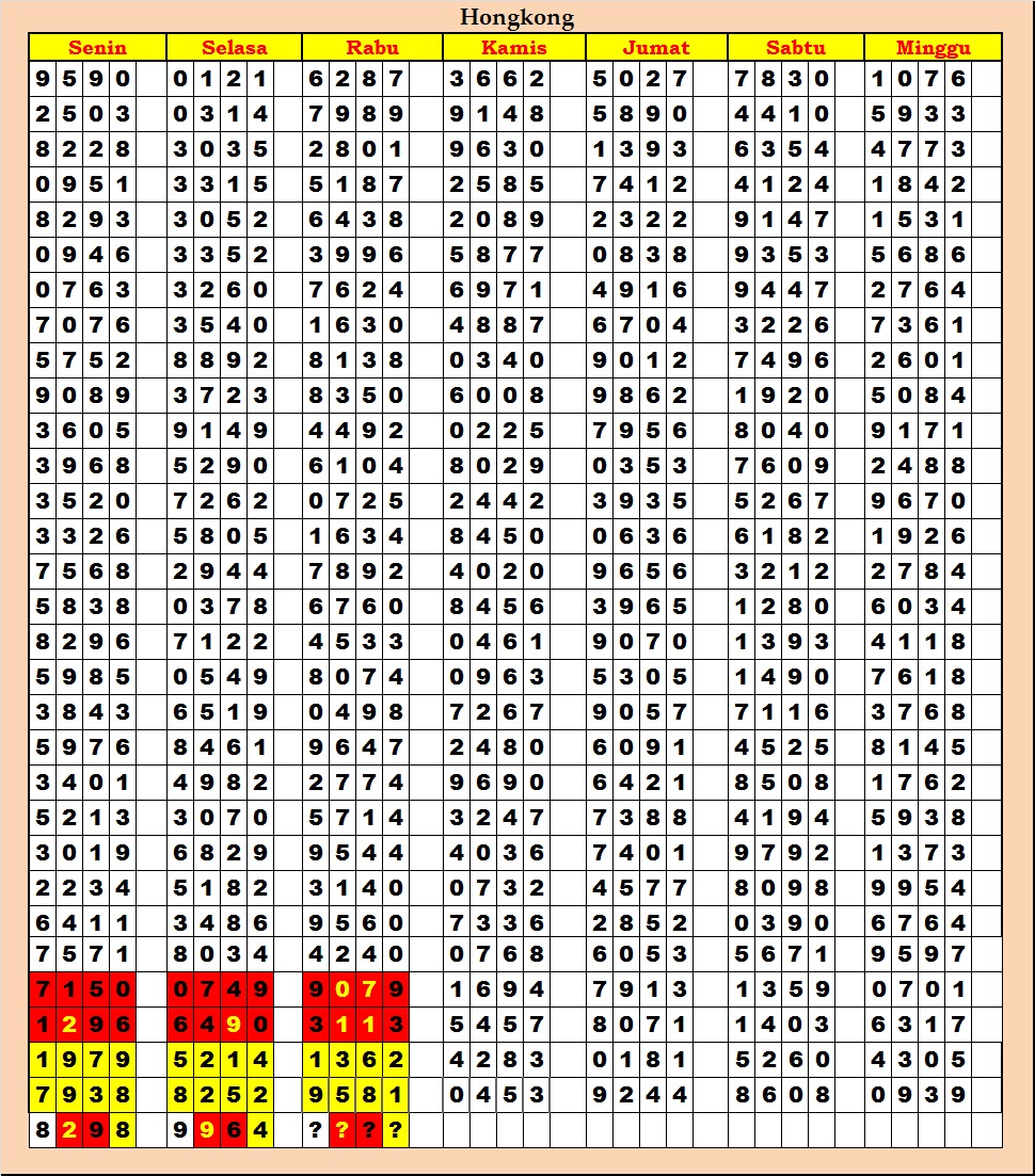 MASTER HONGKONG Kamis, 02-10-2025 Merupakan Prediksi Otomatis yang menggabungkan Metode Kalender Togel Dengan Rumus-rumus kontrol yang sudah terbukti keakuratanya.Gunakan Aplikasi Rekap untuk mendapatkan LN TOP. Harap Maklum Jika kadang meleset MASTER HONGKONG kita. Jadikan ini sebagai perbandingan saja dan tetap UPS