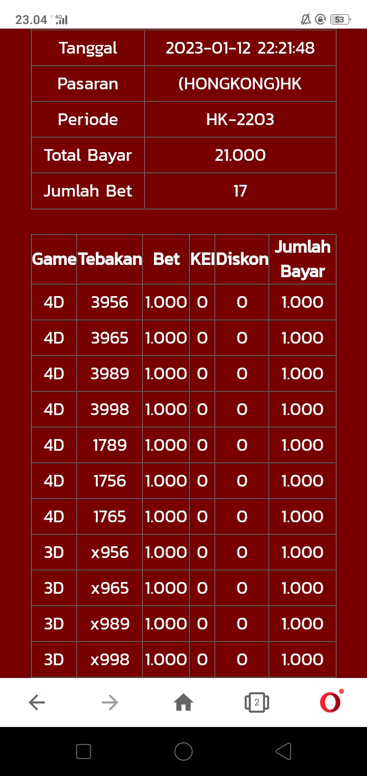 | TABEL DATA HK VERSI 4D TAHUN 2004 HINGGA SEKARANG |