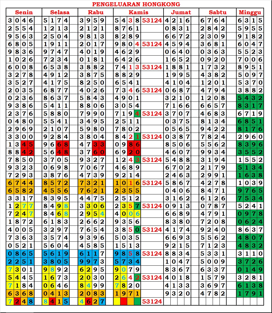 MASTER HONGKONG Minggu, 19-10-2025 Merupakan Prediksi Otomatis yang menggabungkan Metode Kalender Togel Dengan Rumus-rumus kontrol yang sudah terbukti keakuratanya.Gunakan Aplikasi Rekap untuk mendapatkan LN TOP. Harap Maklum Jika kadang meleset MASTER HONGKONG kita. Jadikan ini sebagai perbandingan saja dan tetap UPS