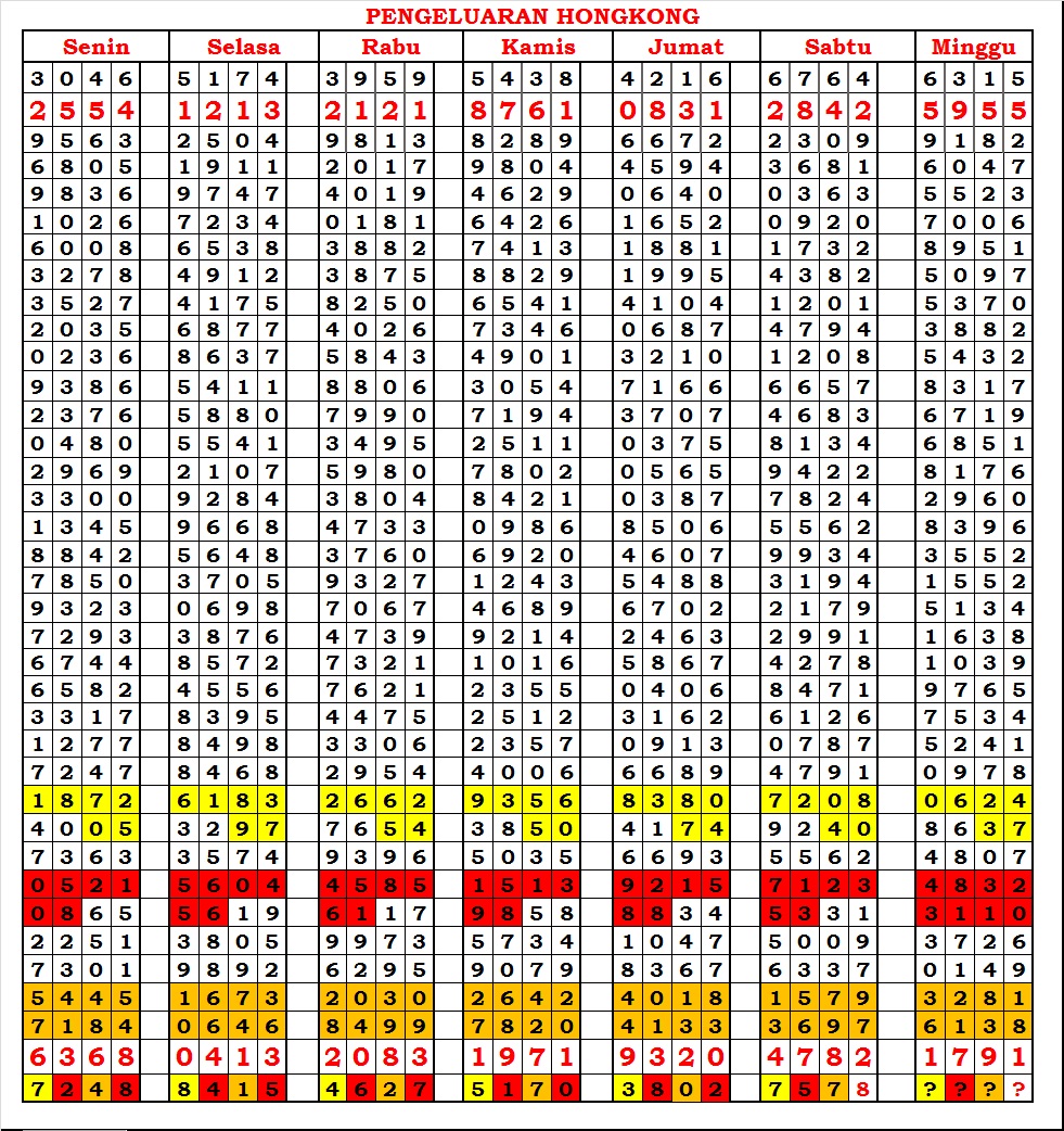 MASTER HONGKONG Minggu, 19-10-2025 Merupakan Prediksi Otomatis yang menggabungkan Metode Kalender Togel Dengan Rumus-rumus kontrol yang sudah terbukti keakuratanya.Gunakan Aplikasi Rekap untuk mendapatkan LN TOP. Harap Maklum Jika kadang meleset MASTER HONGKONG kita. Jadikan ini sebagai perbandingan saja dan tetap UPS