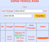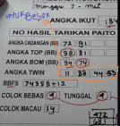 dapat tapi mengesalkan…karna rumus kawn habis kenak silang 31/34/32/39 pokok mya yg bawa 3 kenk semua, gimana lagi…nasi udah jadi bubur ayam,hari yg mengesal kan ..dia (kawantu) paket 2/6 300k..26/27/29x 30k bb
