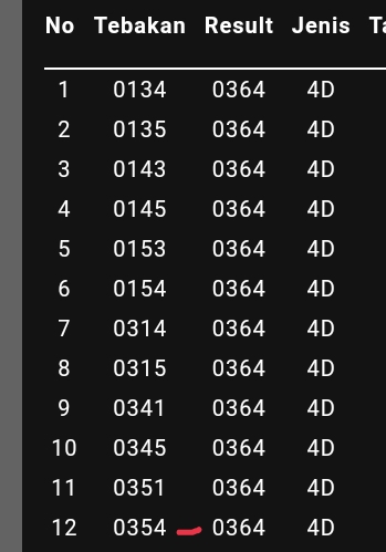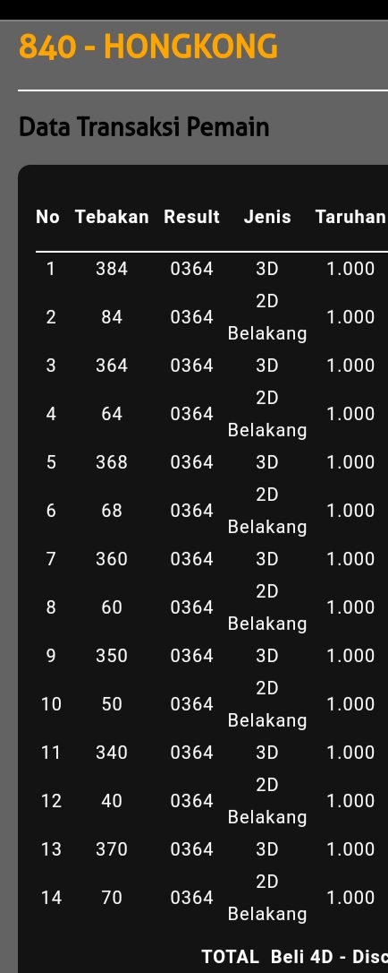 TABEL DATA HK VERSI 4D TAHUN 2004 HINGGA SEKARANG |