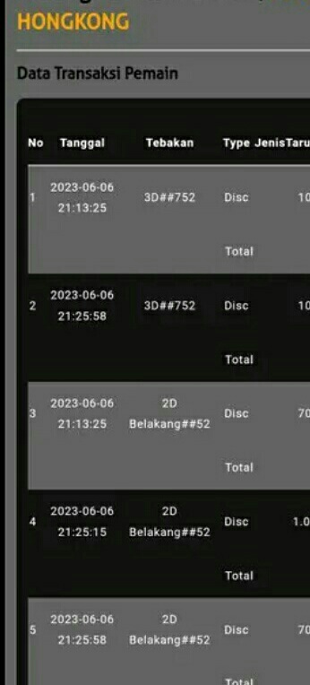 TABEL DATA HK VERSI 4D TAHUN 2004 HINGGA SEKARANG |