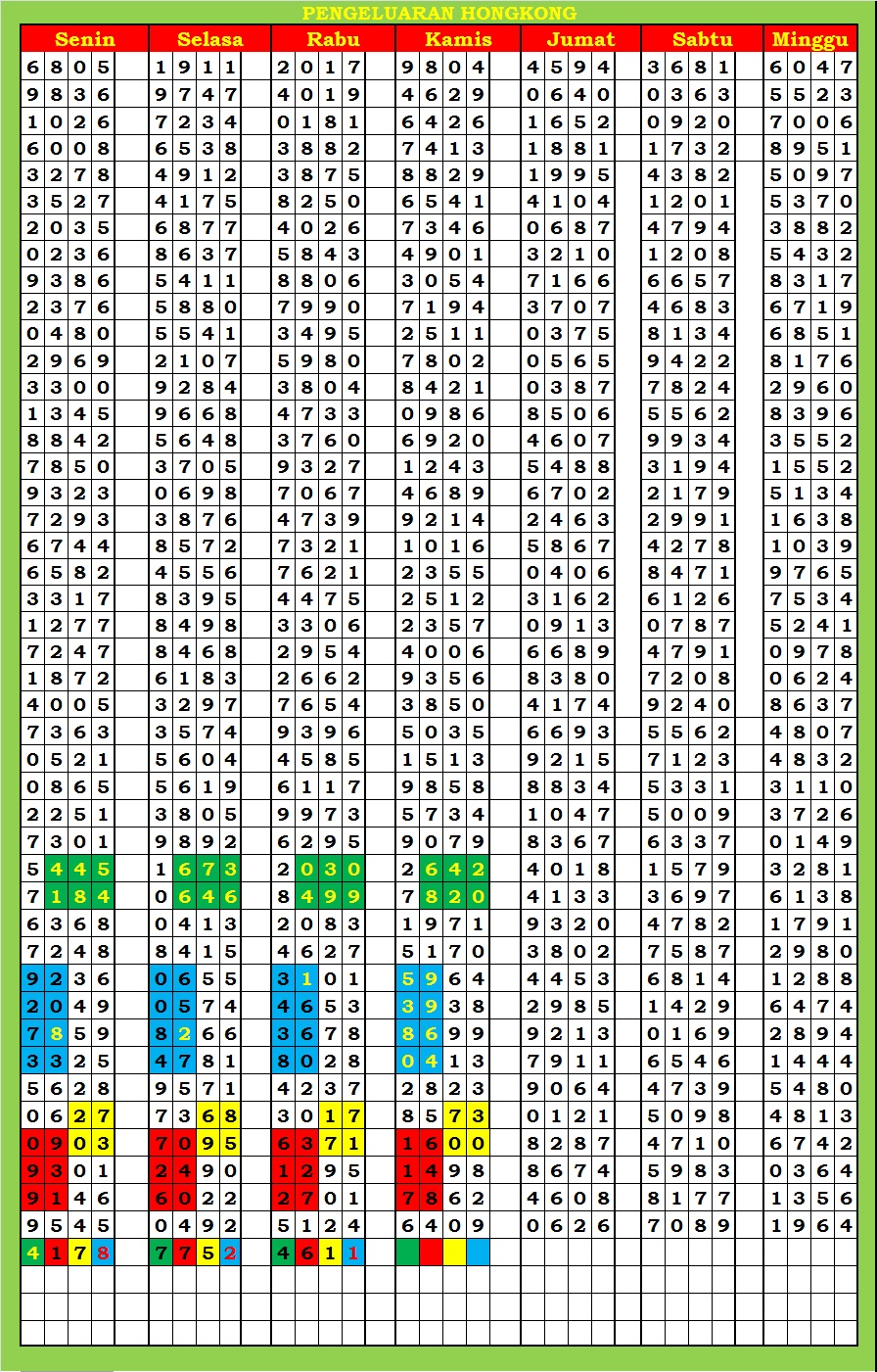 MASTER HONGKONG Selasa, 14-10-2025 Merupakan Prediksi Otomatis yang menggabungkan Metode Kalender Togel Dengan Rumus-rumus kontrol yang sudah terbukti keakuratanya.Gunakan Aplikasi Rekap untuk mendapatkan LN TOP. Harap Maklum Jika kadang meleset MASTER HONGKONG kita. Jadikan ini sebagai perbandingan saja dan tetap UPS