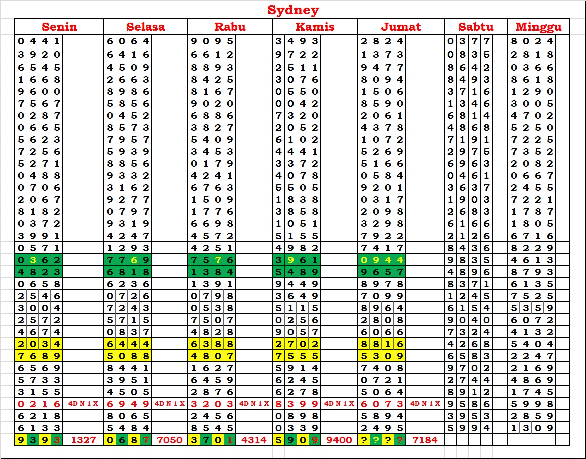 TABEL DATA SYDNEY 6D VERSI HARIAN |