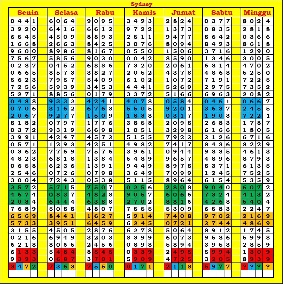 MASTER SYDNEY Minggu, 12-10-2025 Merupakan Prediksi Otomatis yang menggabungkan Metode Kalender Togel Dengan Rumus-rumus kontrol yang sudah terbukti keakuratanya.Gunakan Aplikasi Rekap untuk mendapatkan LN TOP. Harap Maklum Jika kadang meleset MASTER SYDNEY kita. Jadikan ini sebagai perbandingan saja dan tetap UPS