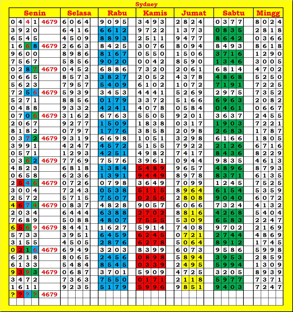 MASTER SYDNEY Minggu, 12-10-2025 Merupakan Prediksi Otomatis yang menggabungkan Metode Kalender Togel Dengan Rumus-rumus kontrol yang sudah terbukti keakuratanya.Gunakan Aplikasi Rekap untuk mendapatkan LN TOP. Harap Maklum Jika kadang meleset MASTER SYDNEY kita. Jadikan ini sebagai perbandingan saja dan tetap UPS