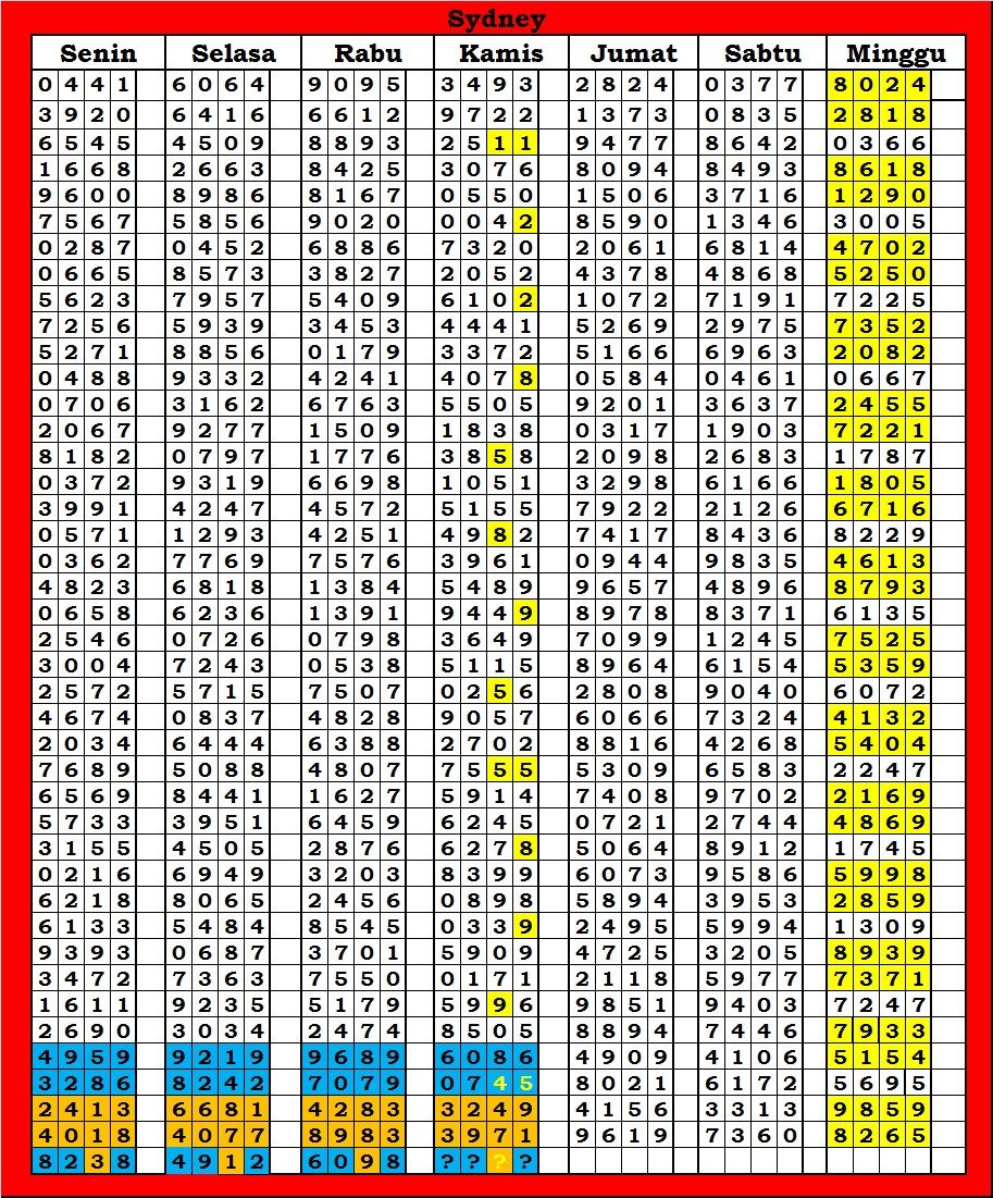 TABEL DATA SYDNEY VERSI 4D TAHUN 2009 HINGGA SEKARANG |