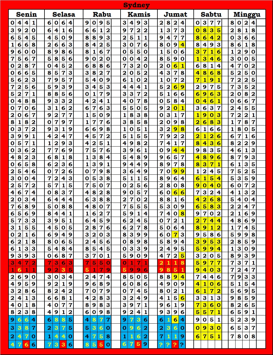 TABEL DATA SYDNEY 6D VERSI HARIAN |