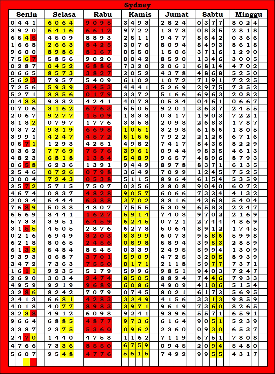TABEL DATA SYDNEY 6D VERSI HARIAN |