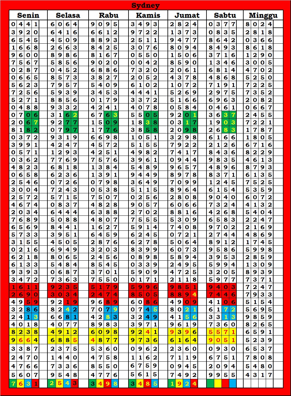 TABEL DATA SYDNEY 6D VERSI HARIAN |