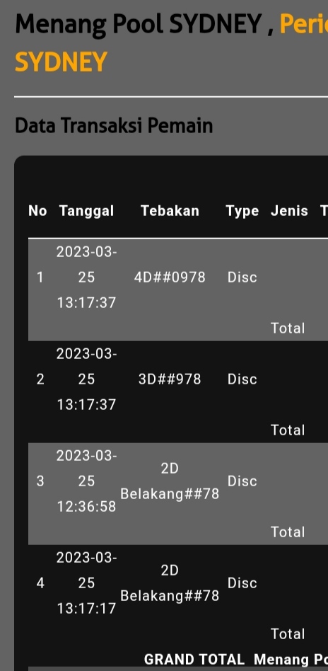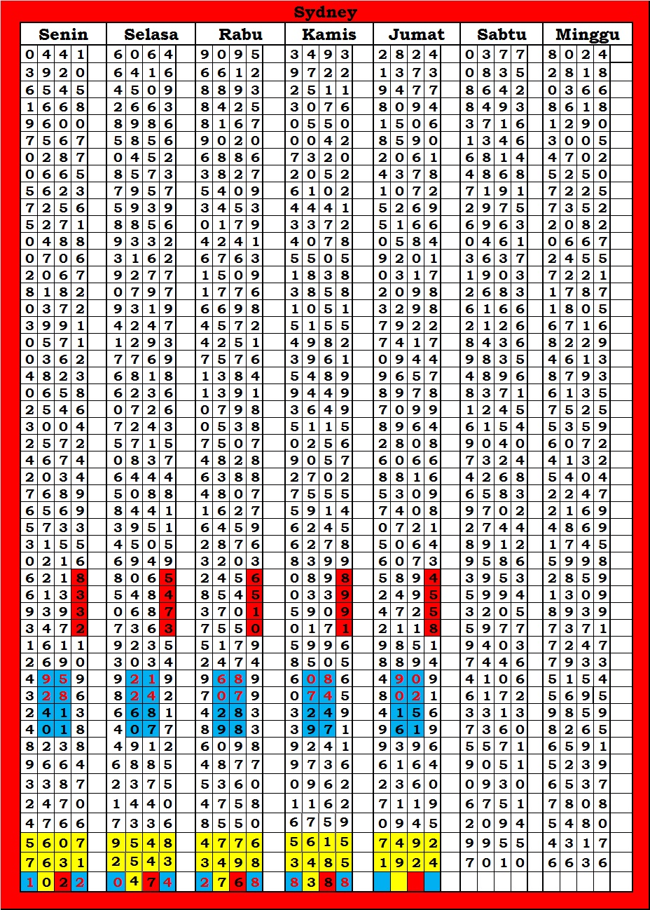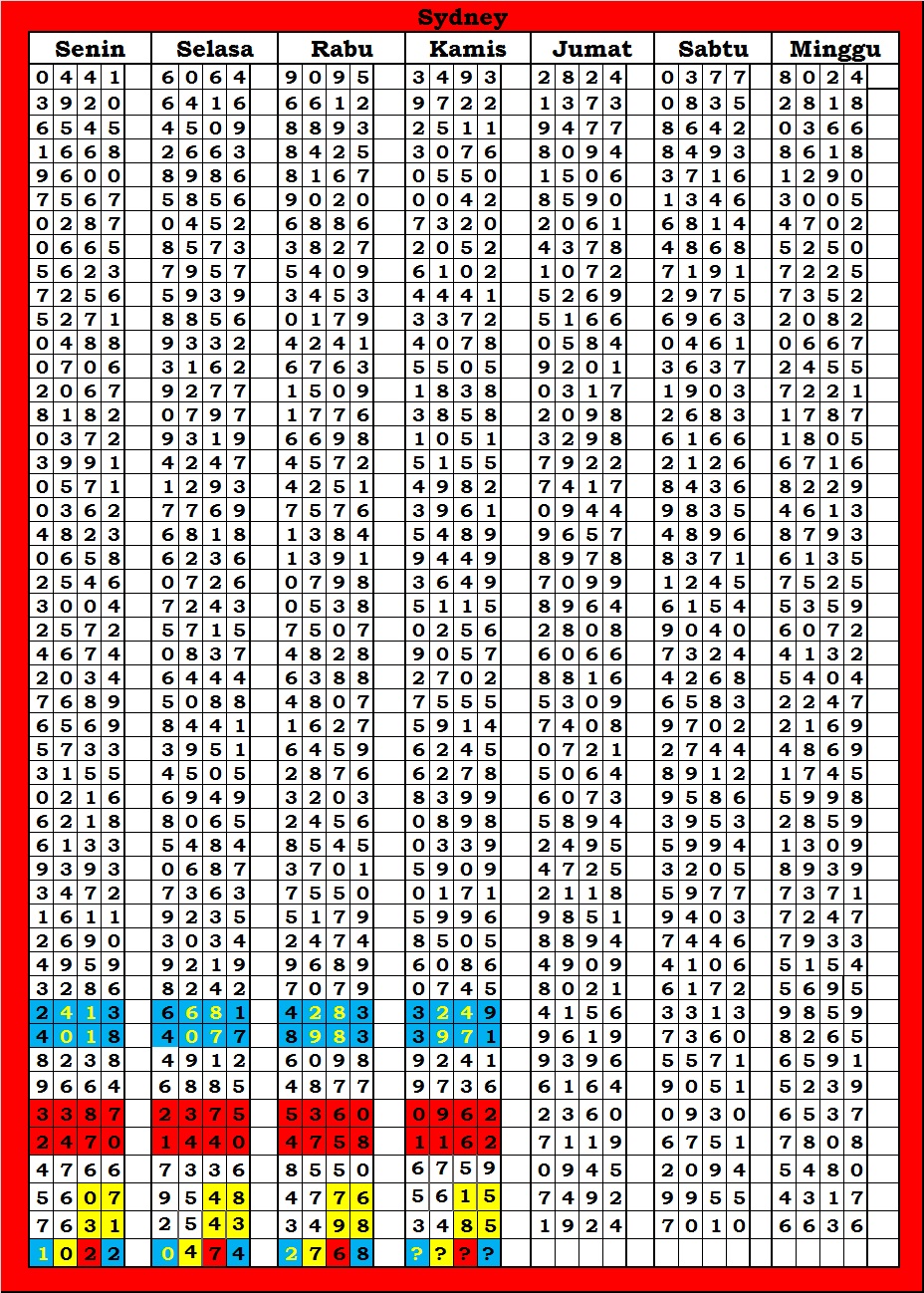 TABEL DATA SYDNEY 6D VERSI HARIAN |