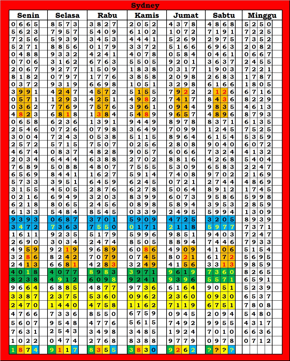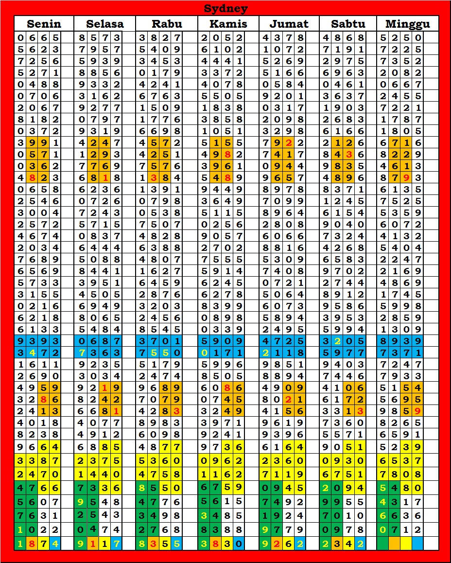 MASTER SYDNEY Kamis, 09-10-2025 Merupakan Prediksi Otomatis yang menggabungkan Metode Kalender Togel Dengan Rumus-rumus kontrol yang sudah terbukti keakuratanya.Gunakan Aplikasi Rekap untuk mendapatkan LN TOP. Harap Maklum Jika kadang meleset MASTER SYDNEY kita. Jadikan ini sebagai perbandingan saja dan tetap UPS