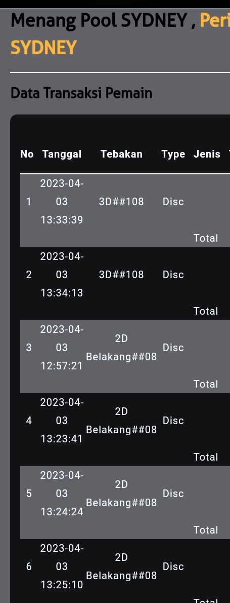 TABEL DATA SYDNEY 6D VERSI HARIAN |