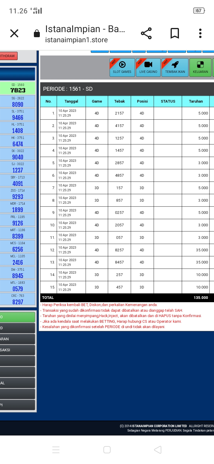 semua postingan komentar SARA, politik, saling menghujat serta saling merendahkan antara prediktor satu dengan yang lainnya jika kami lagi OL mohon maaf langsung kami hapus dan jika telah diperingatkan masih mengulang kami lock datanya